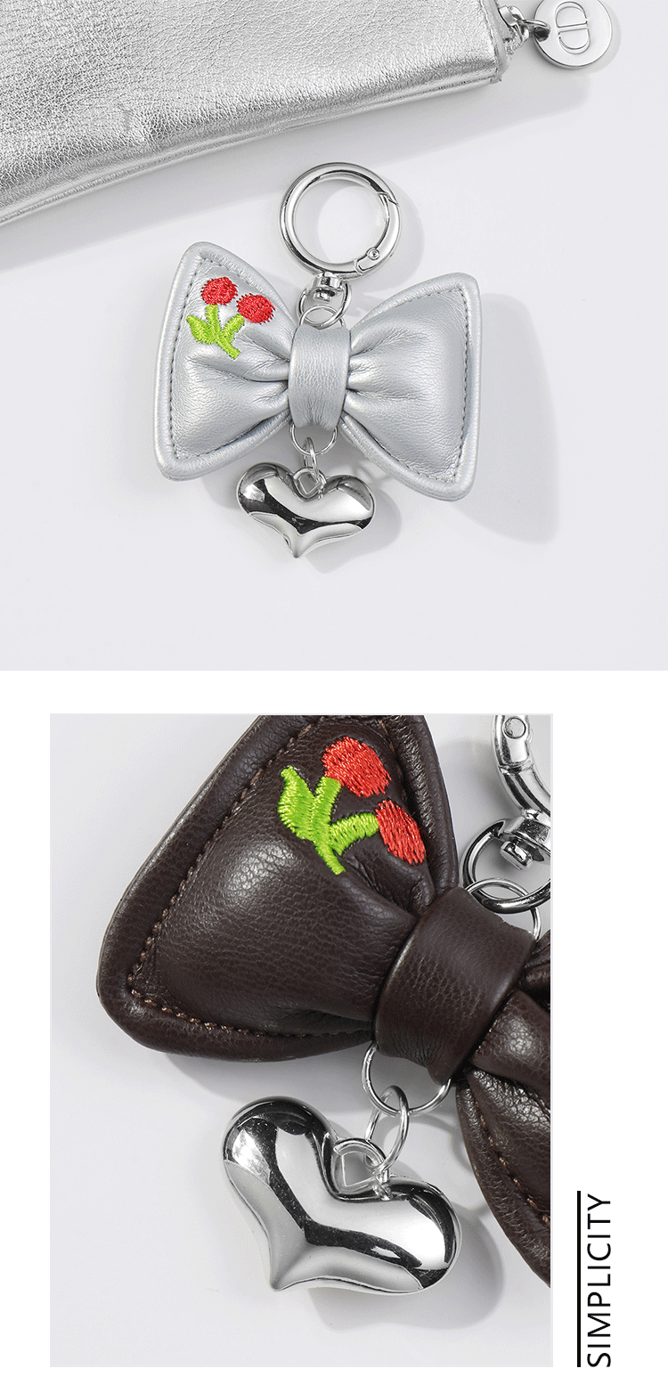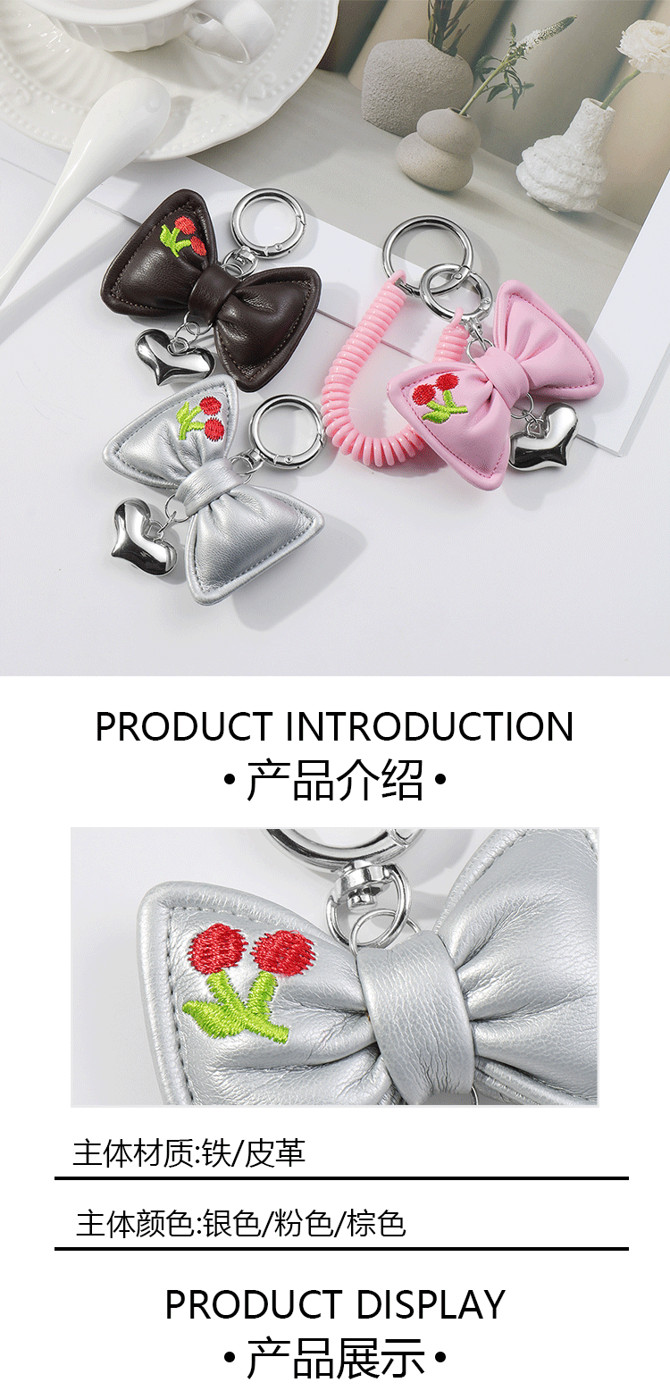 个性复古简约时尚白色蕾丝蝴蝶结棕色豹纹毛球DIY钥匙扣包包挂件