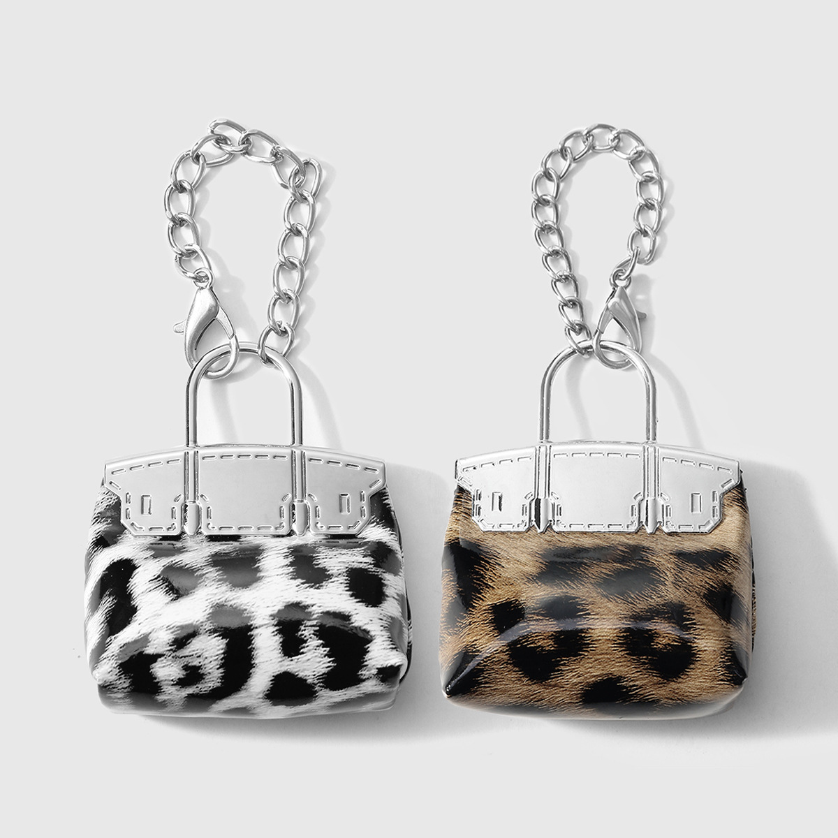 miu系风甜酷复古个性黑白色/棕色豹纹皮革装饰包龙虾扣包包挂件