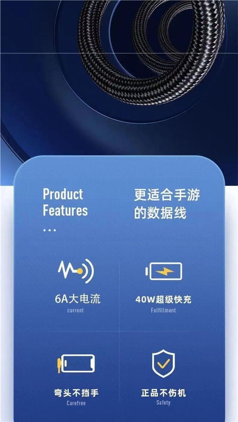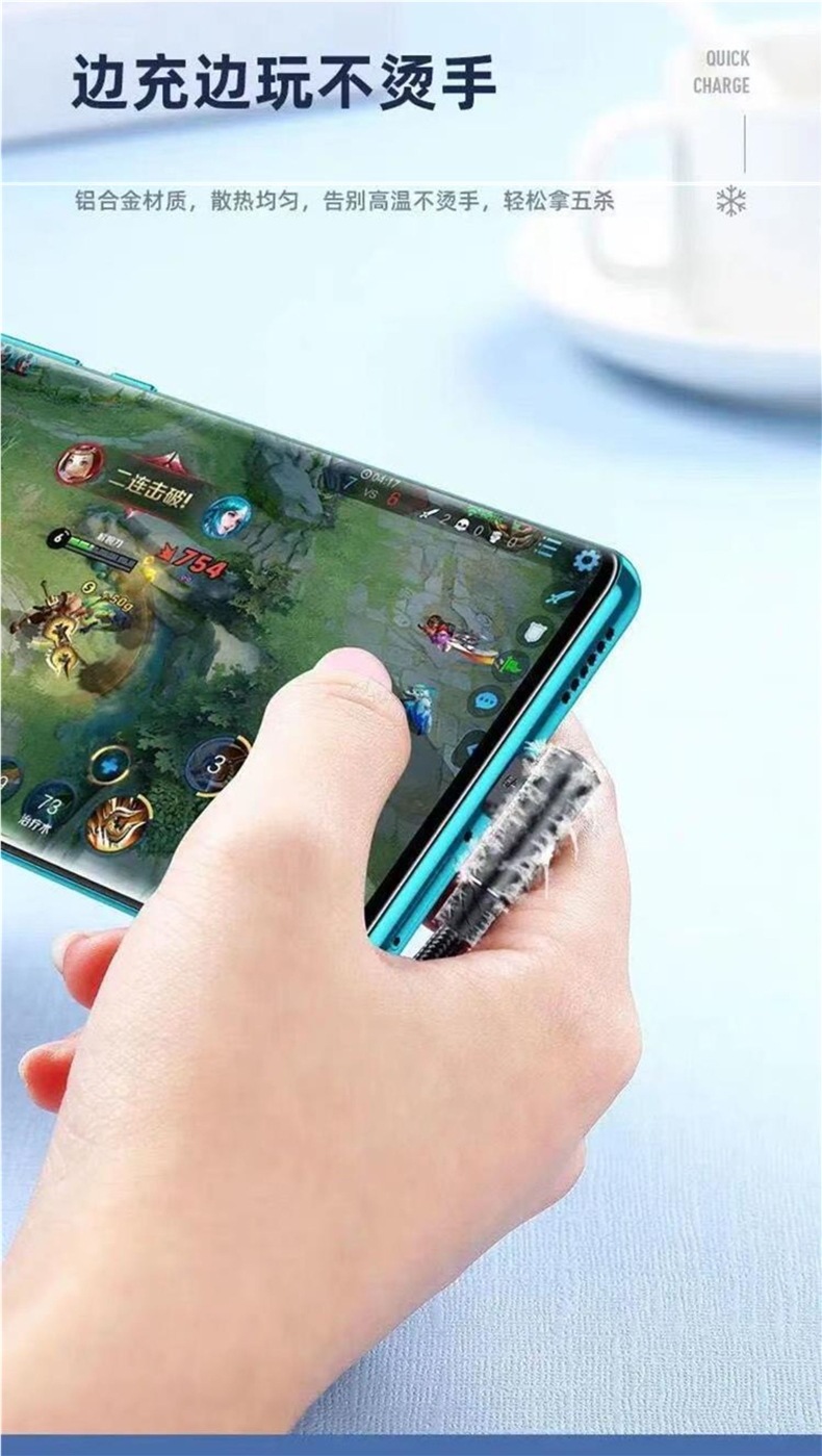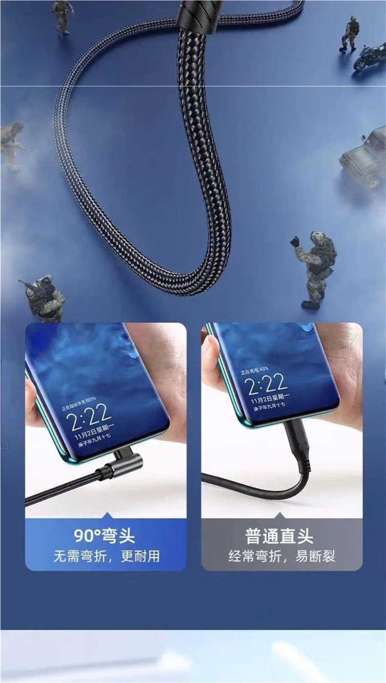 ゲーム専用の120W急速充電Type-cエルボ編組データケーブル
