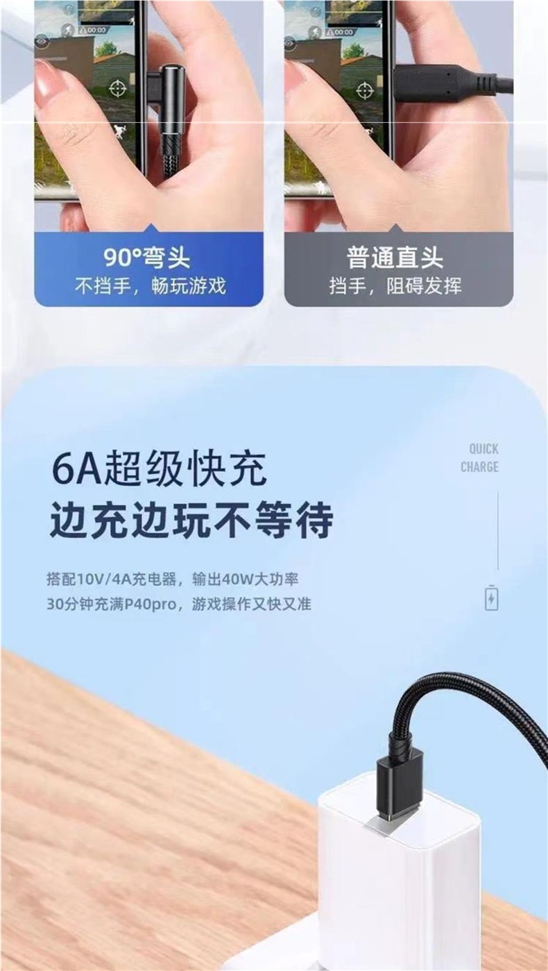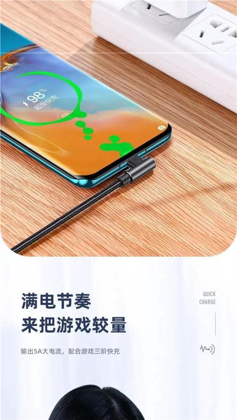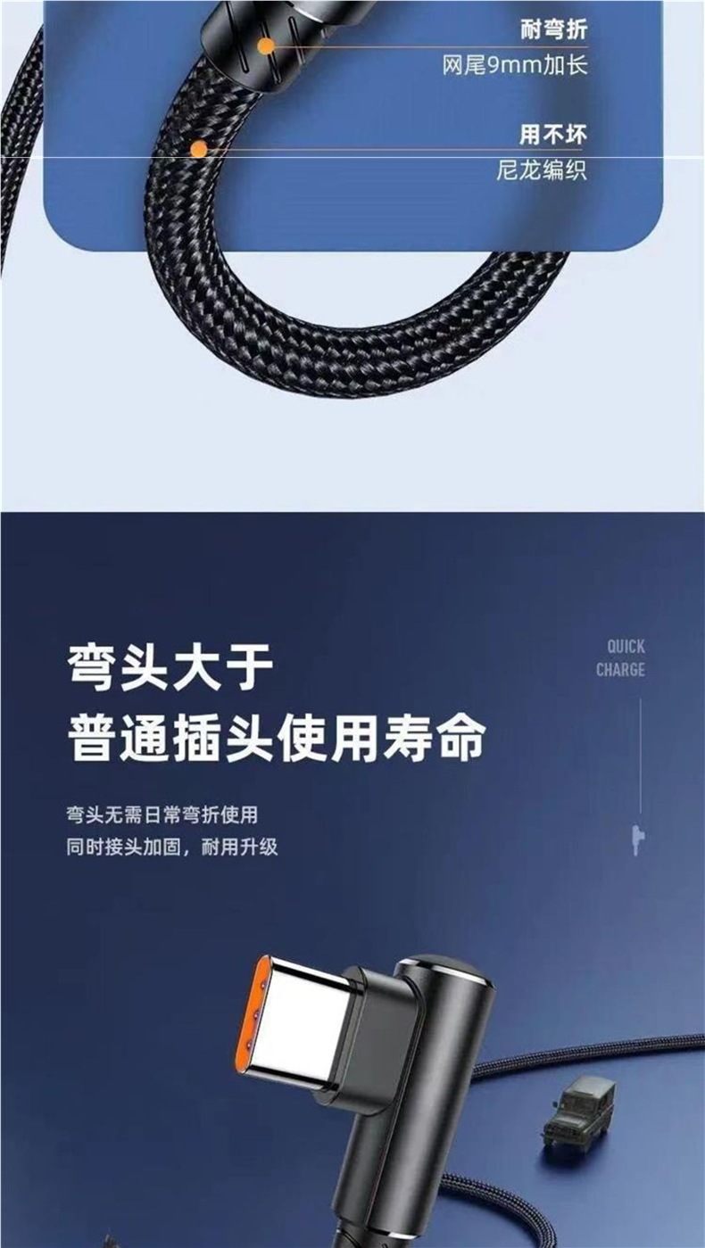 typec数据线弯头超级闪充66W加长单弯6a快充手机充电线游戏机配线