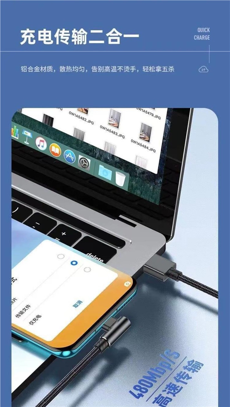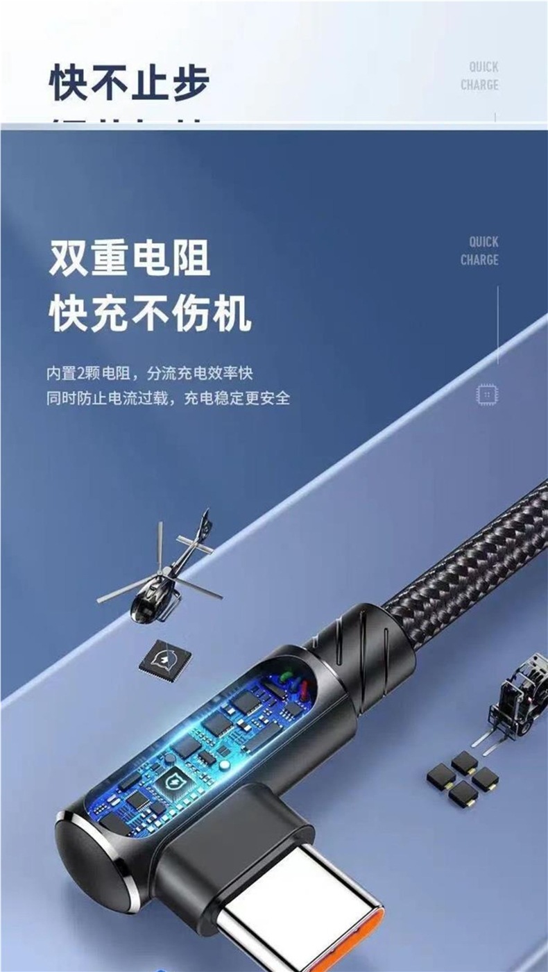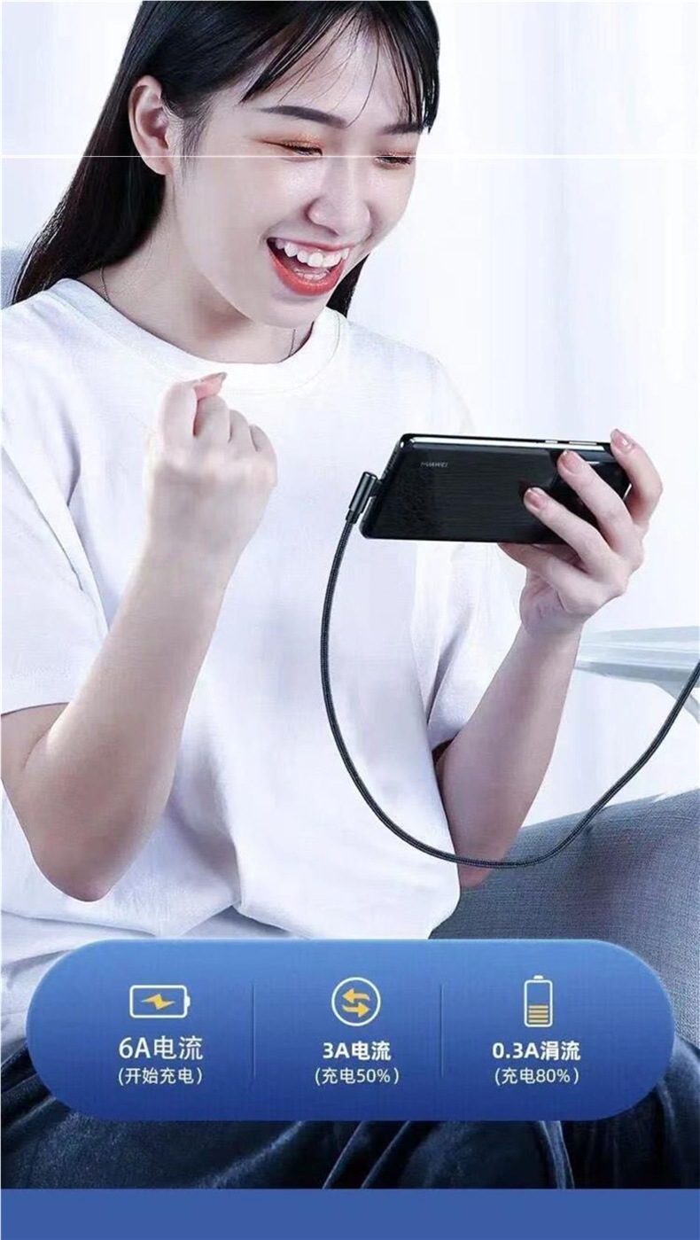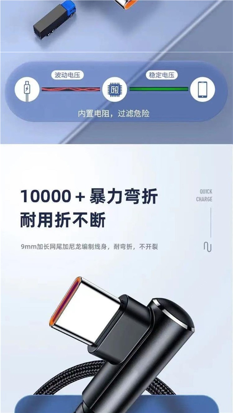 typec数据线弯头超级闪充66W加长单弯6a快充手机充电线游戏机配线