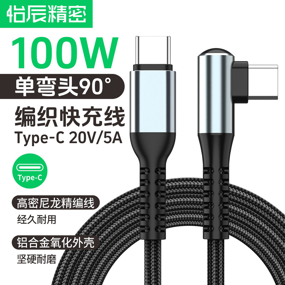 100 ワットシングルエルボ急速充電充電ケーブル TYPE-C2m 延長ケーブル C から C ポリエステルネット 90 度エルボデータケーブル