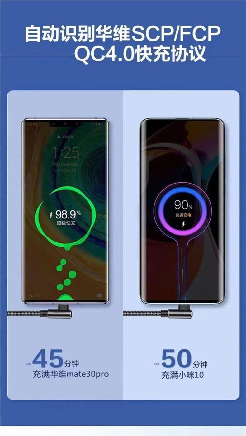 エルボtypecデータケーブルはoppo華為vivo粟栄光6a超急速充電携帯電話充電ケーブルを適用する