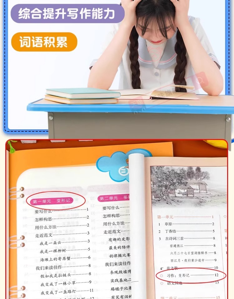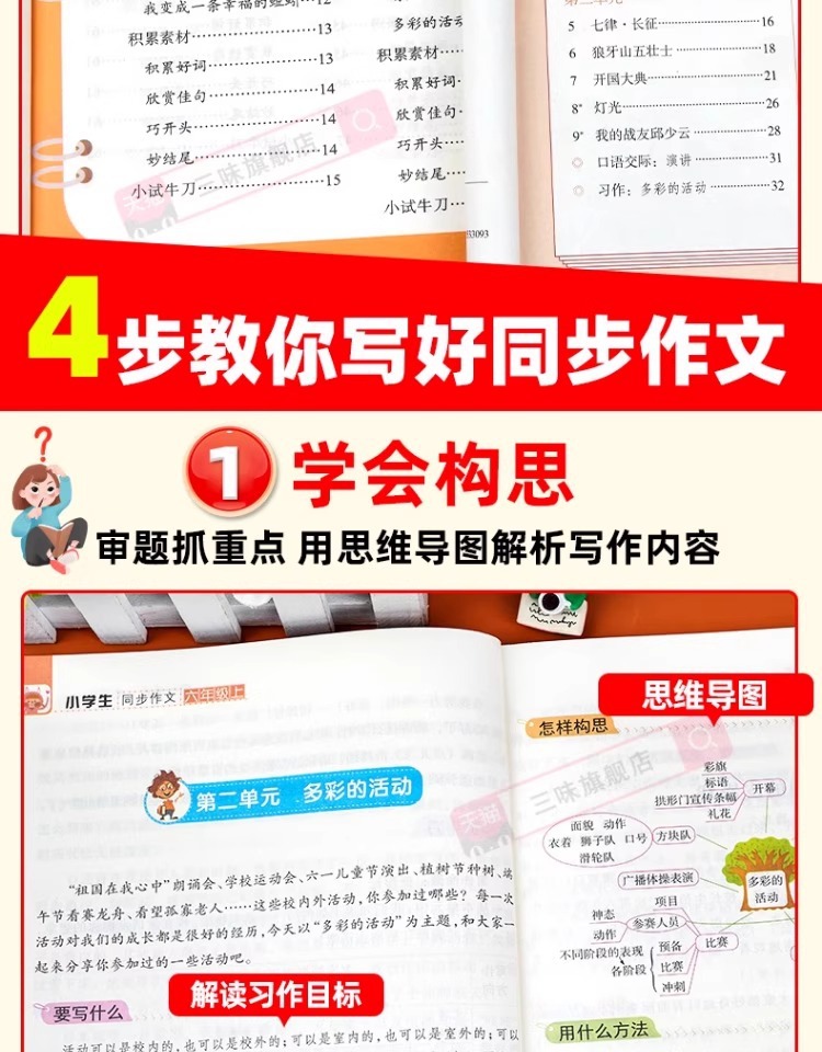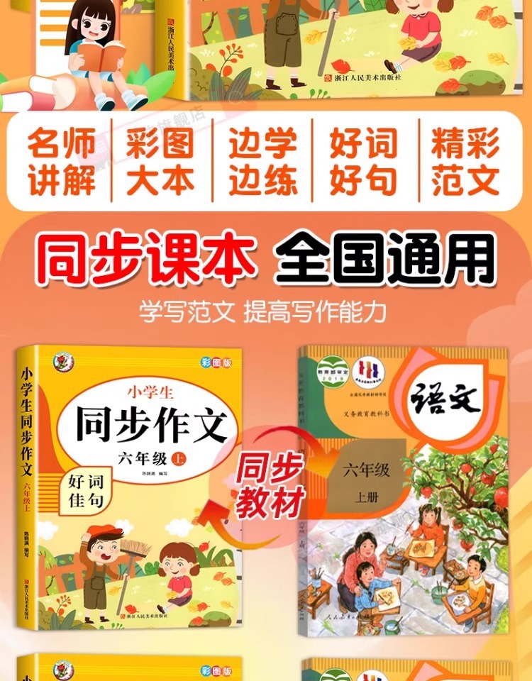 2025年小学生向け作文集(3~6年生用、上巻)人民教育出版社版、中国語作文スキルブック(ビデオ解説付き)