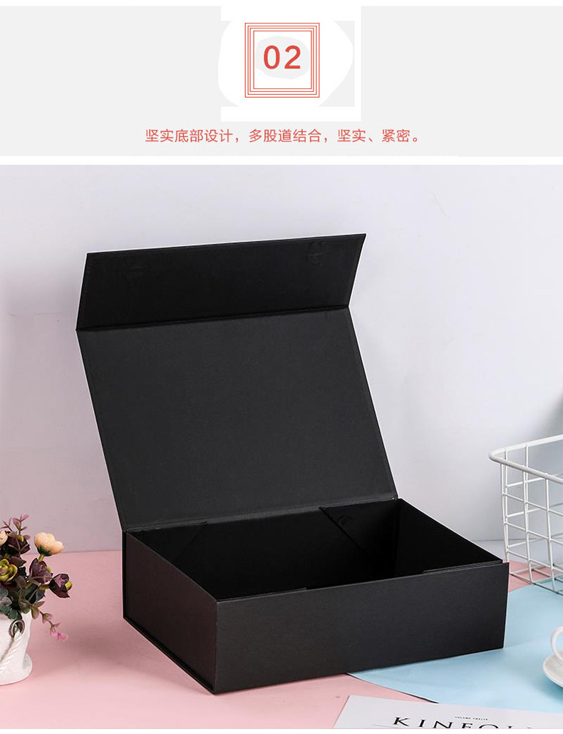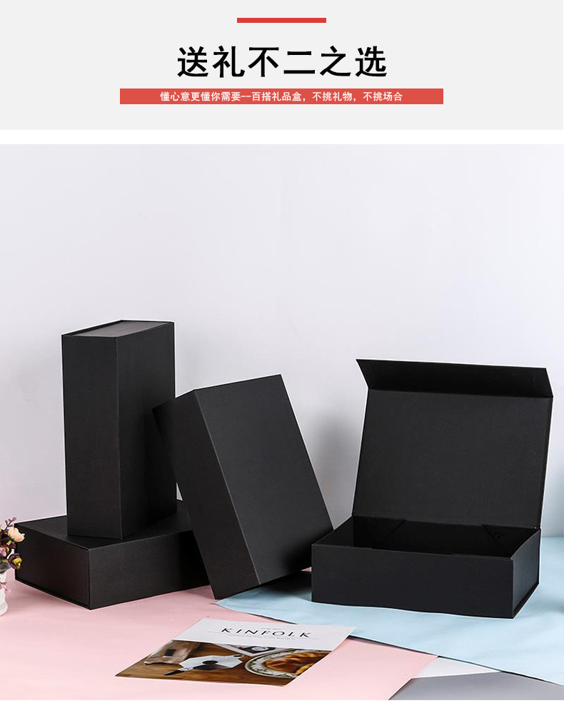 折叠一片式翻盖包装盒黑色折叠鲜花磁吸包装盒硬纸盒礼品盒批发