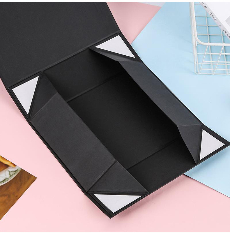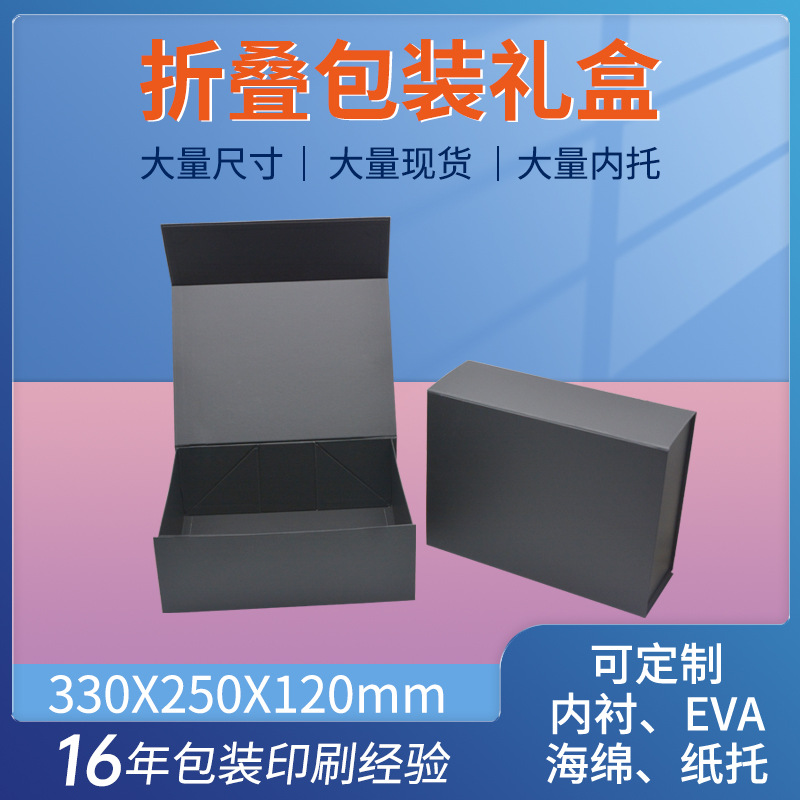 越境大型黒色折りたたみ箱卸売、中小型磁気折りたたみ箱、フリップトップ一体型折りたたみギフトボックス、在庫あり