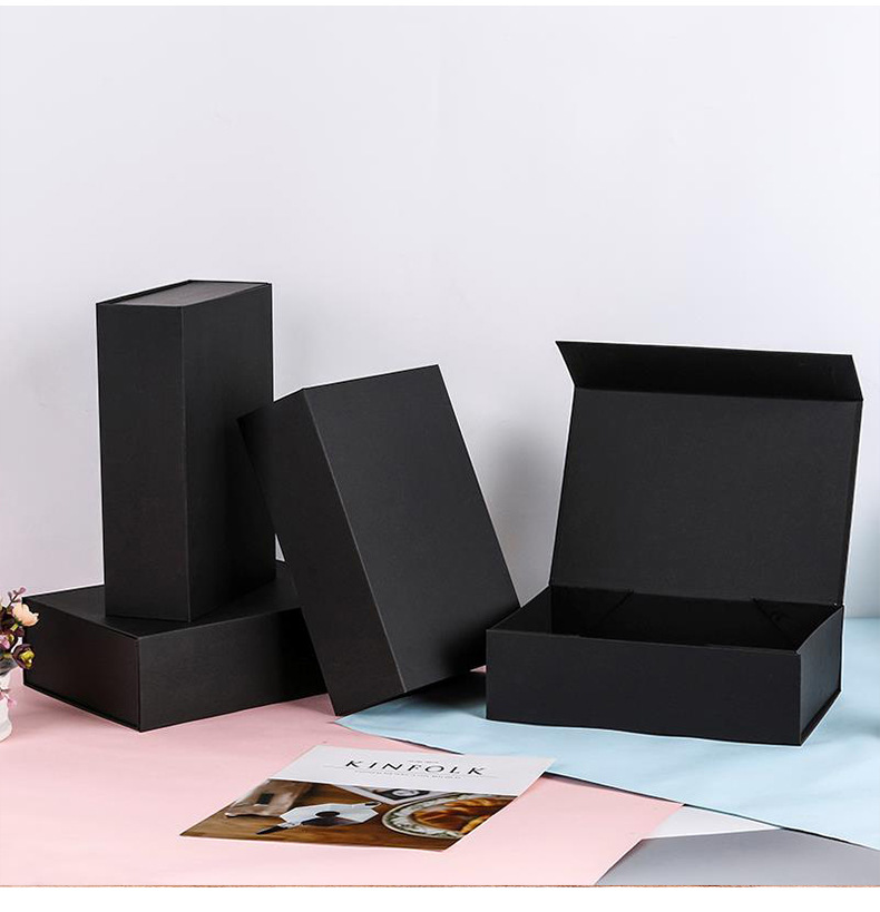 折りたたみワンピースフリップトップ包装箱黒折りたたみ花磁気包装箱段ボールギフトボックス卸売