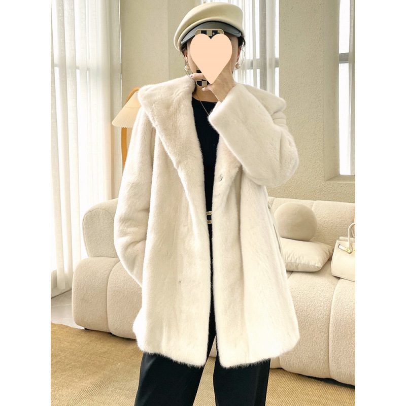 2025新款冬季女中长款皮草时尚连帽大衣加厚保暖人造毛水貂毛外套