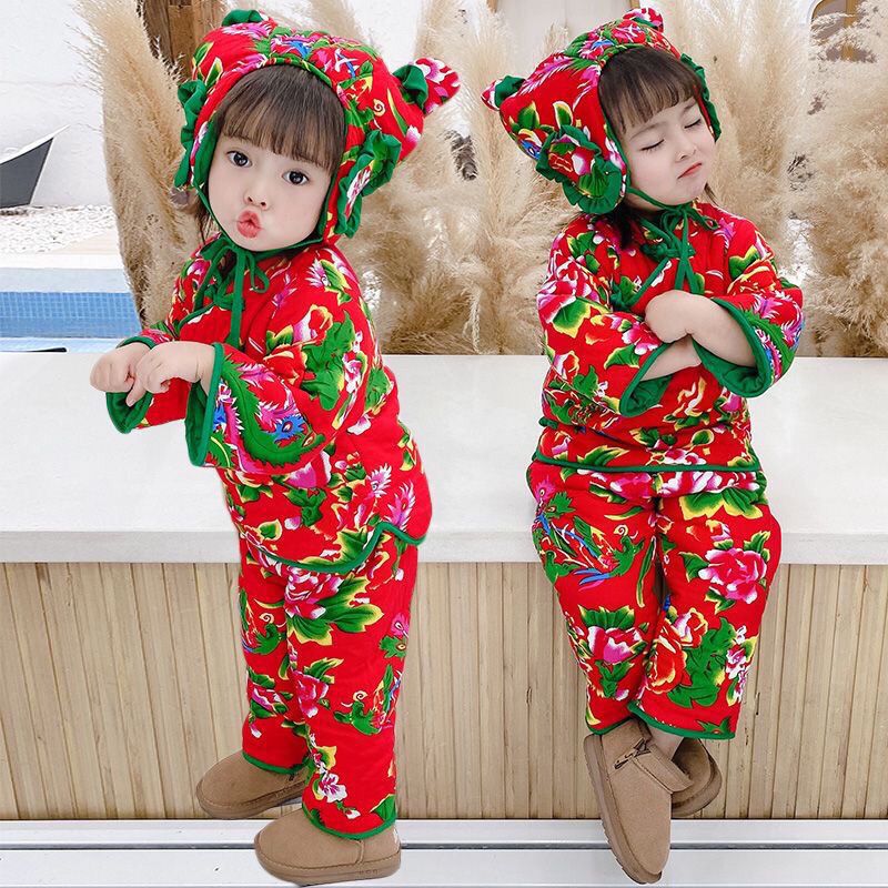 东北大花袄宝宝手工棉衣套装男童冬季加厚羽绒棉袄女童棉服新年装