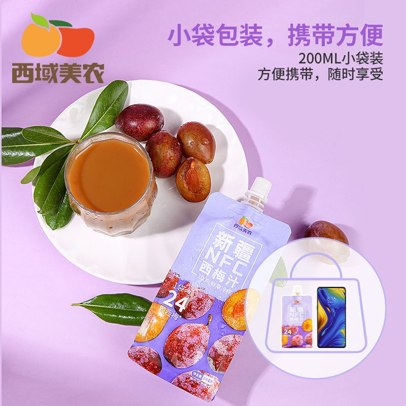 西域美農 新疆プルーンジュース 200ml×10袋 100%天然果汁飲料 NFCプルーン生搾り