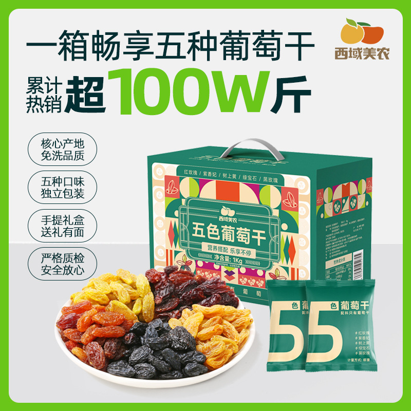 西域美农五色葡萄干礼盒装新疆葡萄干五种口味混搭自然风干批发