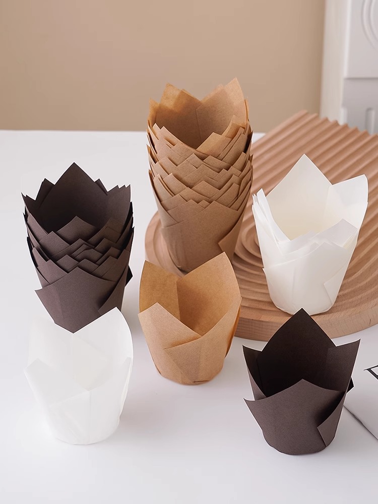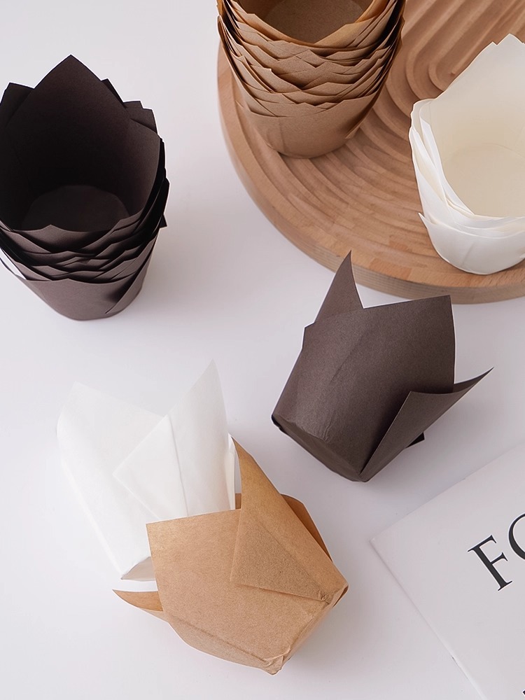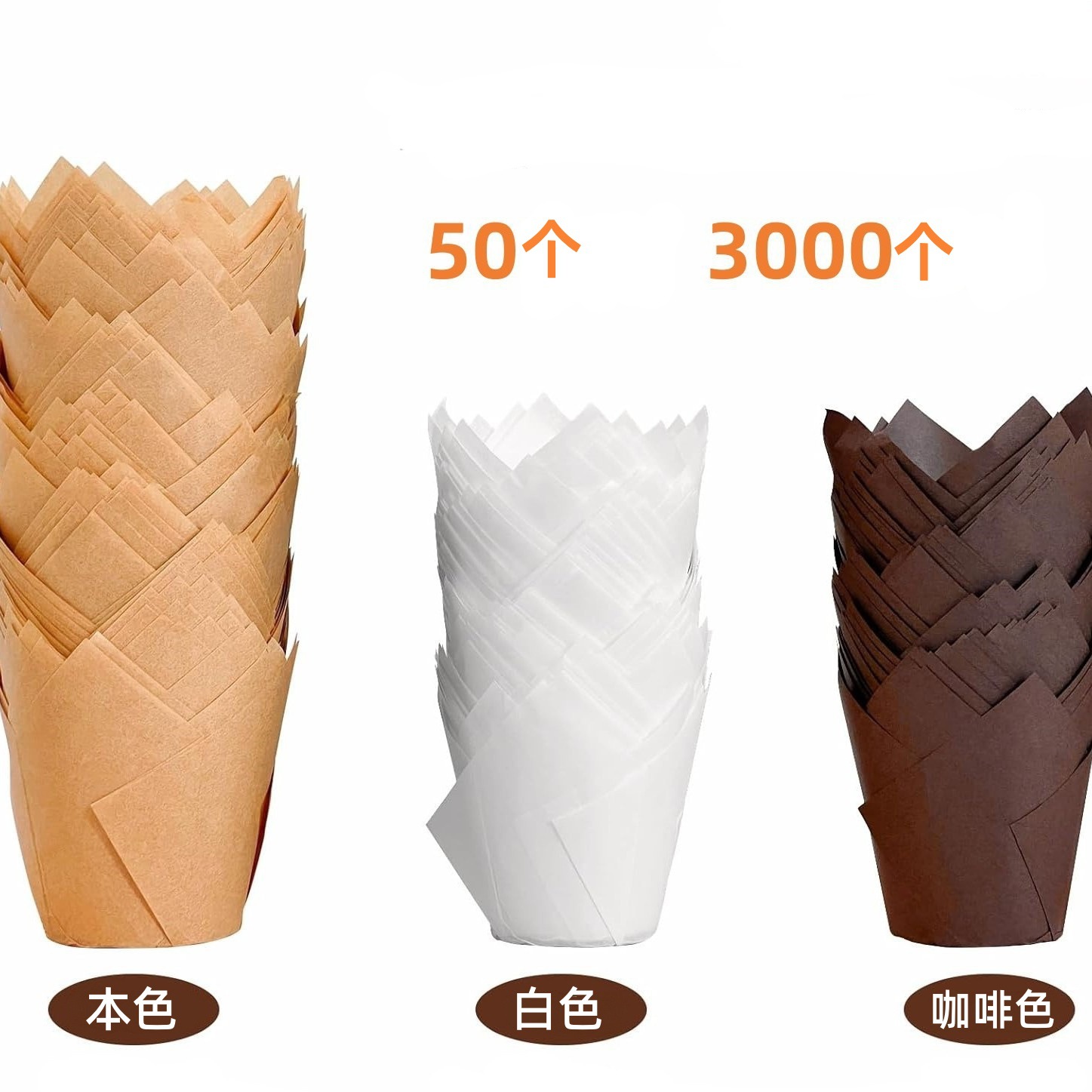 チューリップケーキ紙コップ火炎カップスウェーデン防油紙トーマフィン焼き台紙ブラウン白色自然色50匹