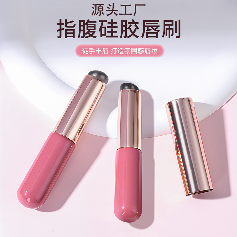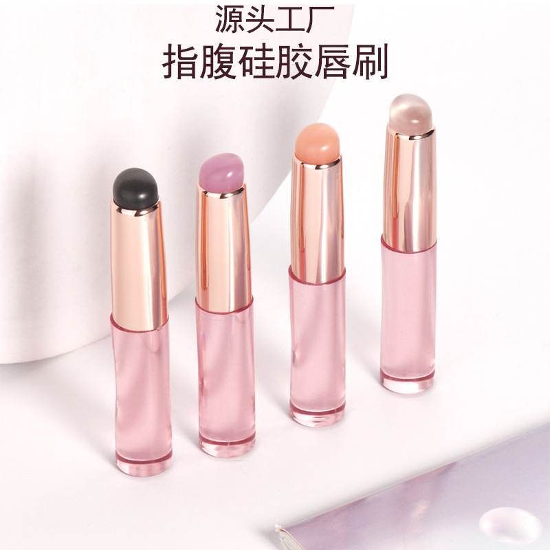 Q柔らかい指の腹のシリカゲルの唇のブラシは携帯で蓋の口紅がついています。
