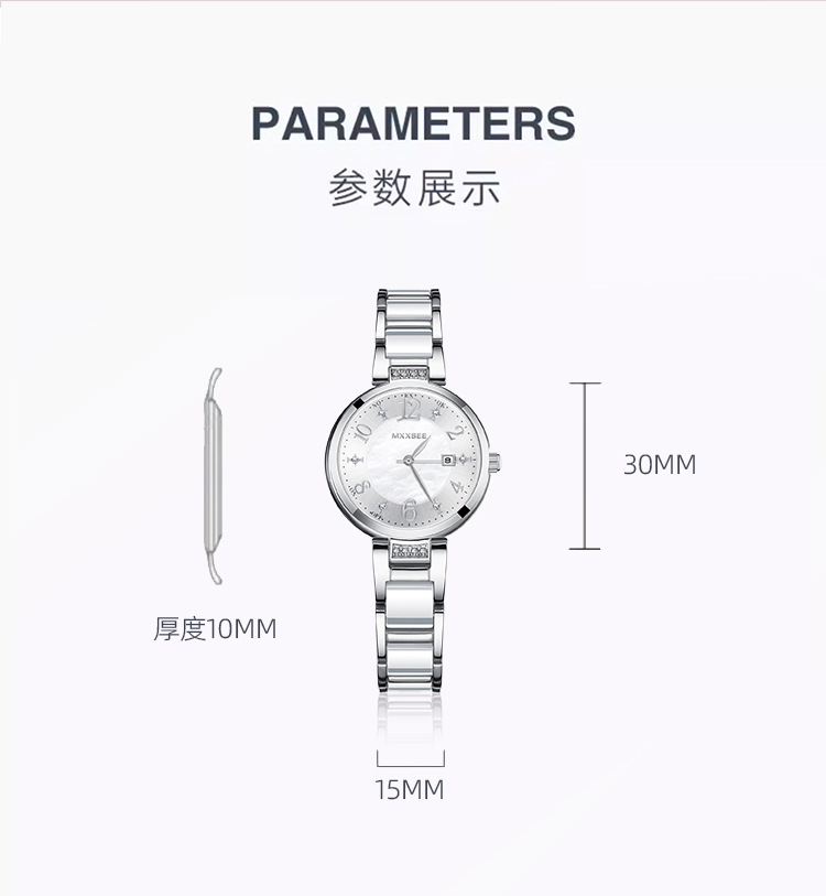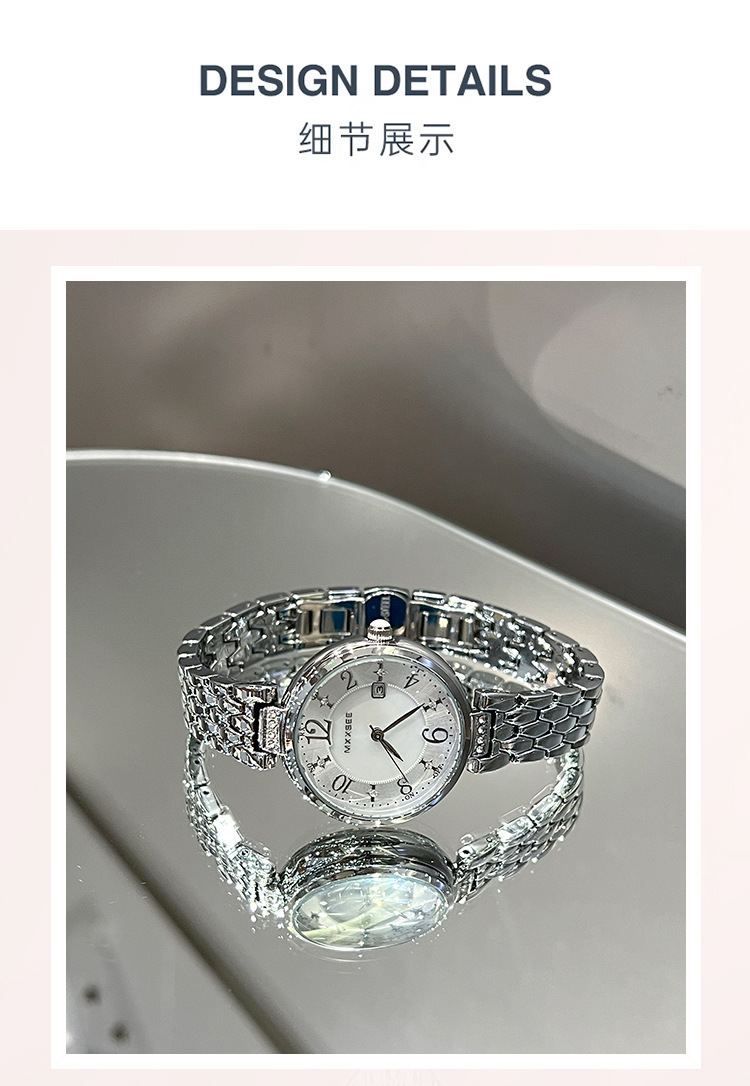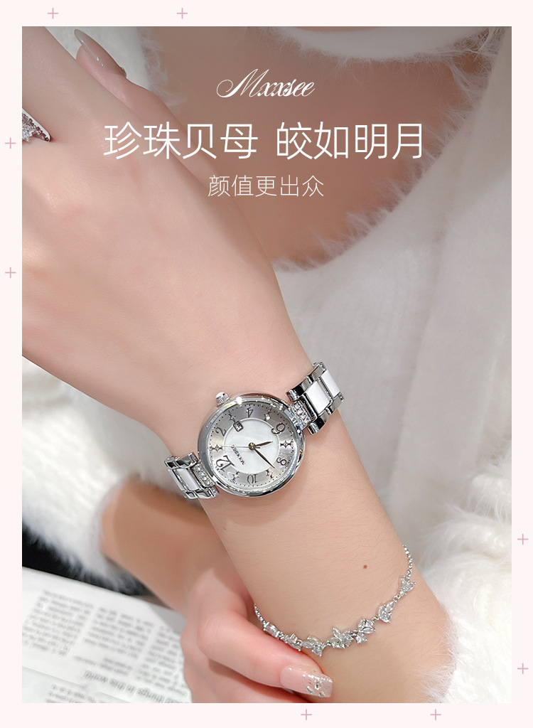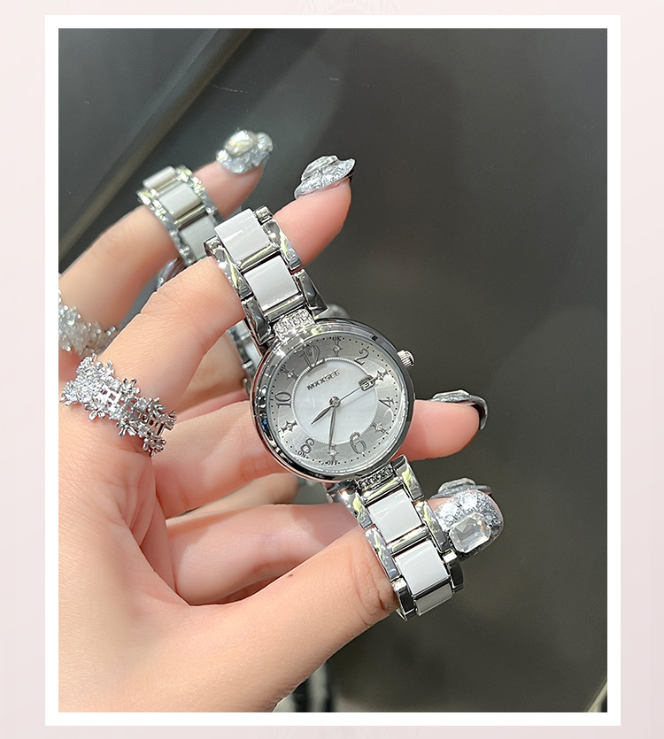 MXXSEEディザトーン起爆ラウンドダイヤモンド女性バンドカレンダー鋼帯セラミック腕時計防水防汗女性卸売り
