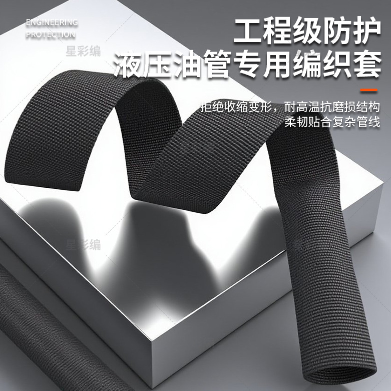 黒ポリエステル中空ケーシングナイロン繊維布カバー難燃性耐摩耗性繊維ケーシング油圧オイルパイプ保護カバー