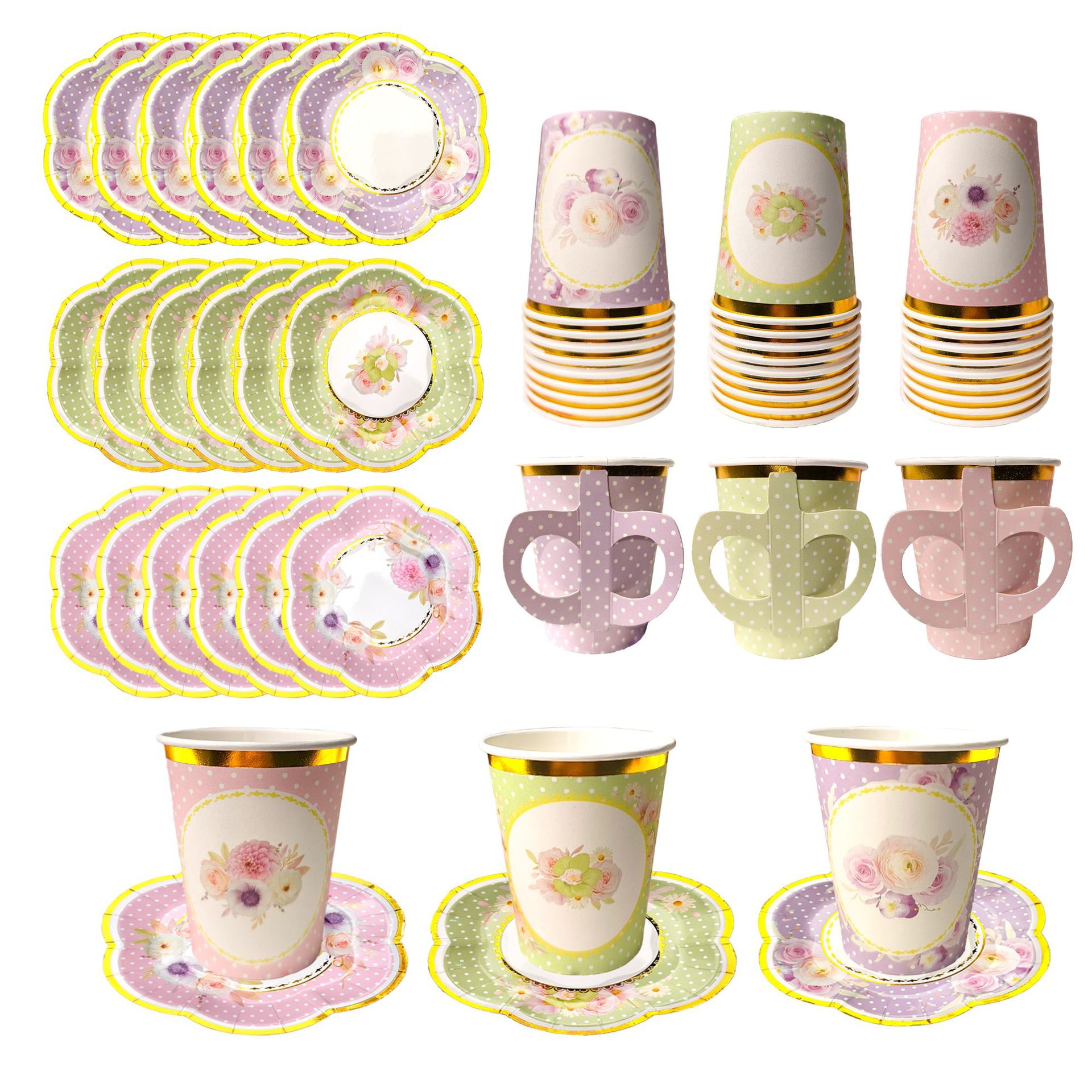 茶话会主题生日派对用品套装一次性餐盘纸盘带手柄纸杯装饰餐具