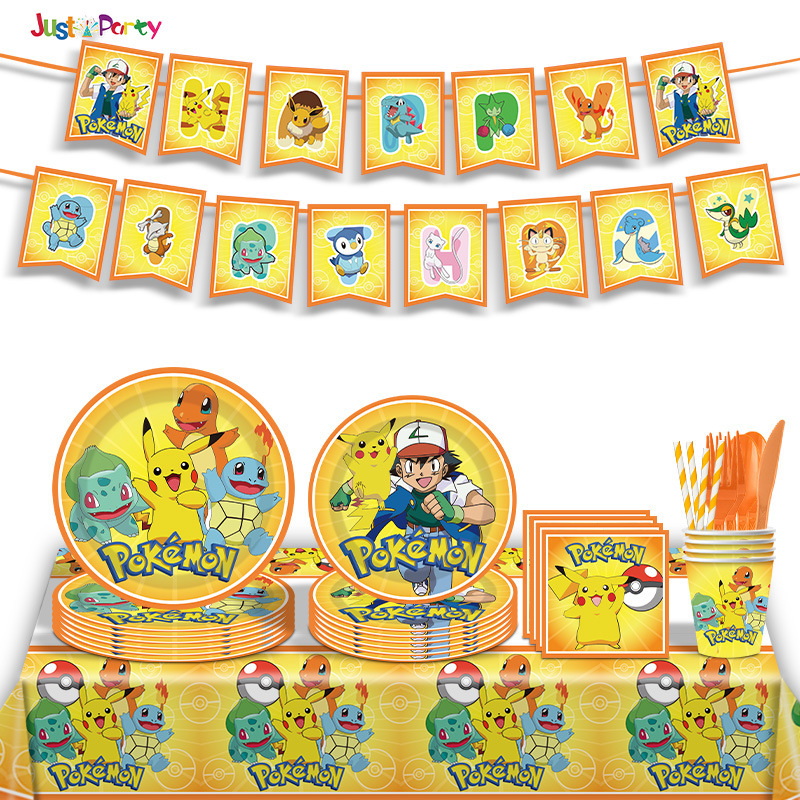 現物ピカチュウパーティーのテーマ装飾宝可夢横断幕吊りテーブルクロス紙コップ紙皿セット