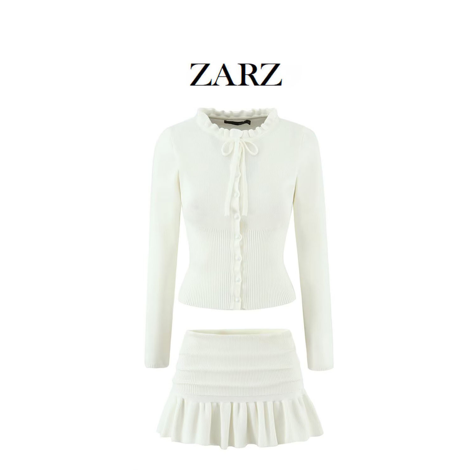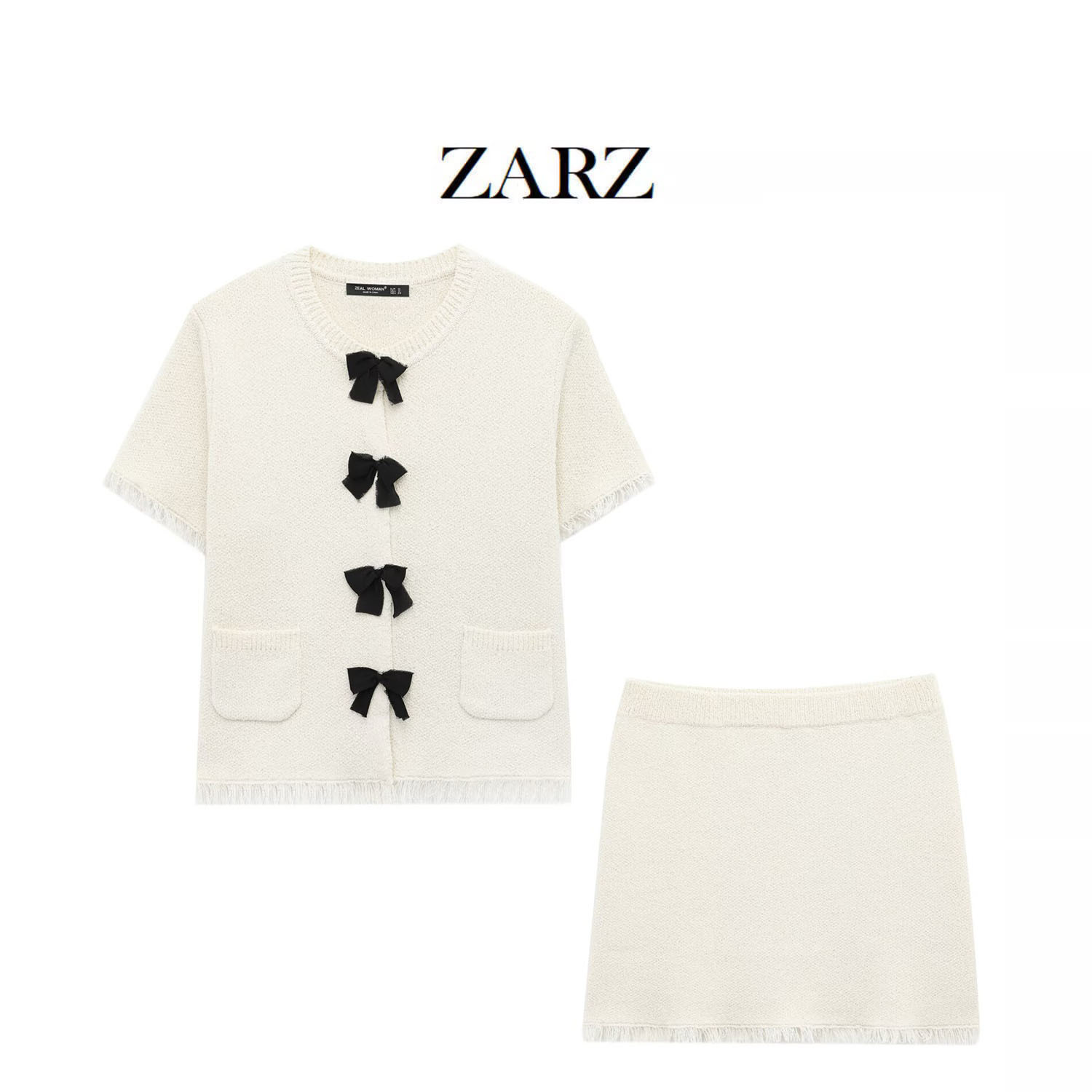ZARZ 自家製ヨーロッパとアメリカンスタイルの新しい女性の蝶結び半袖ニットジャケットローエッジニットミニスカート