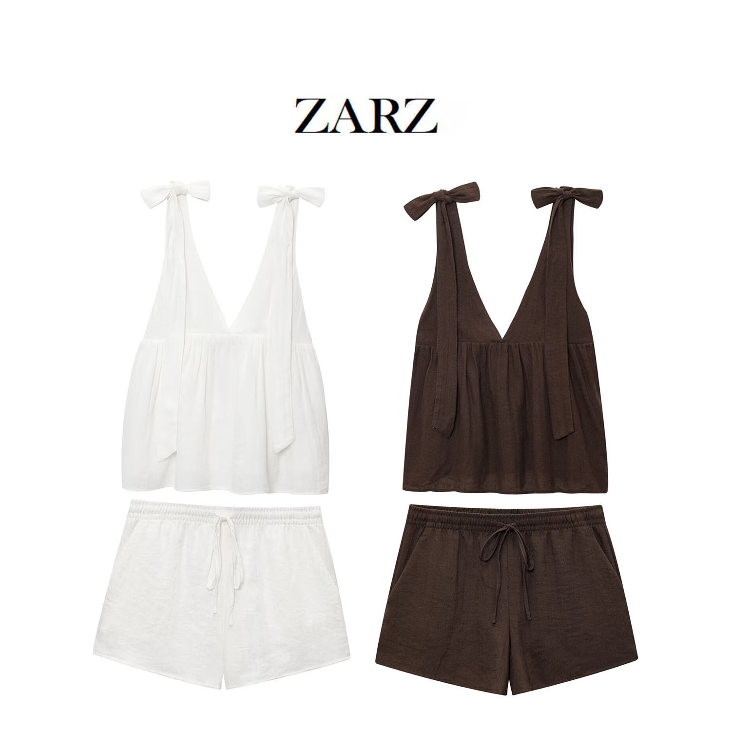 ZARZ 自制 欧美风 新款女装 洋气蝴蝶结饰上衣蝴蝶结饰迷你短裤