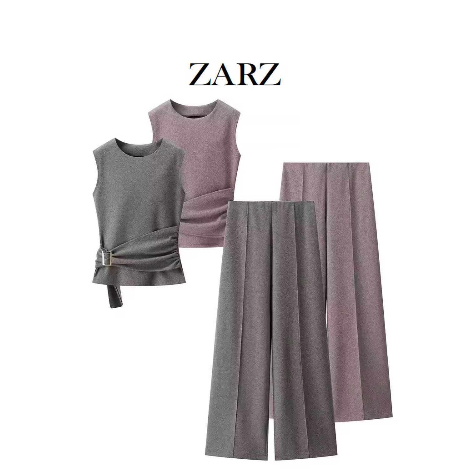 ZARZ 自制 欧美风 新款女装 洋气时髦开叉设计短背心打皱宽腿裤