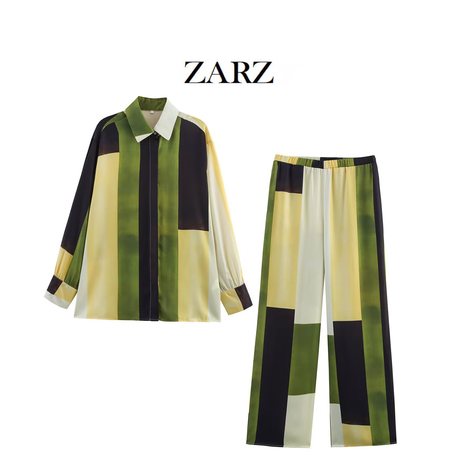 ZARZ 自家製ヨーロッパとアメリカンスタイルの新しい女性のスタイルのシルクサテンテクスチャープリントシャツシルクサテンテクスチャープリントパンツ