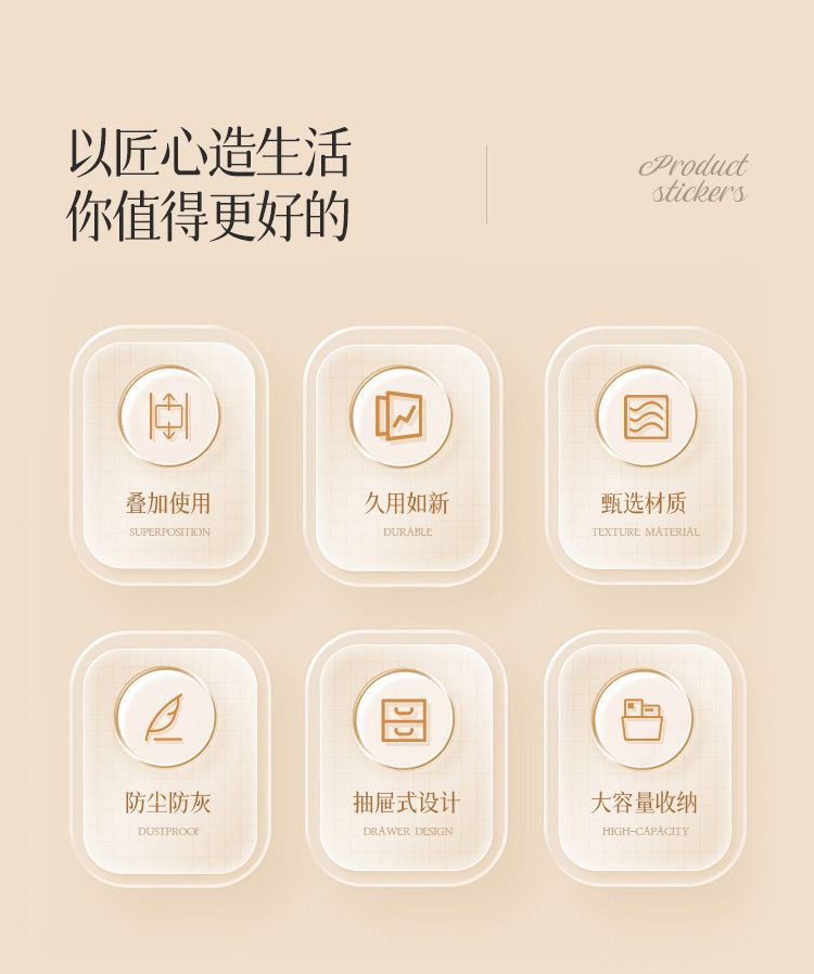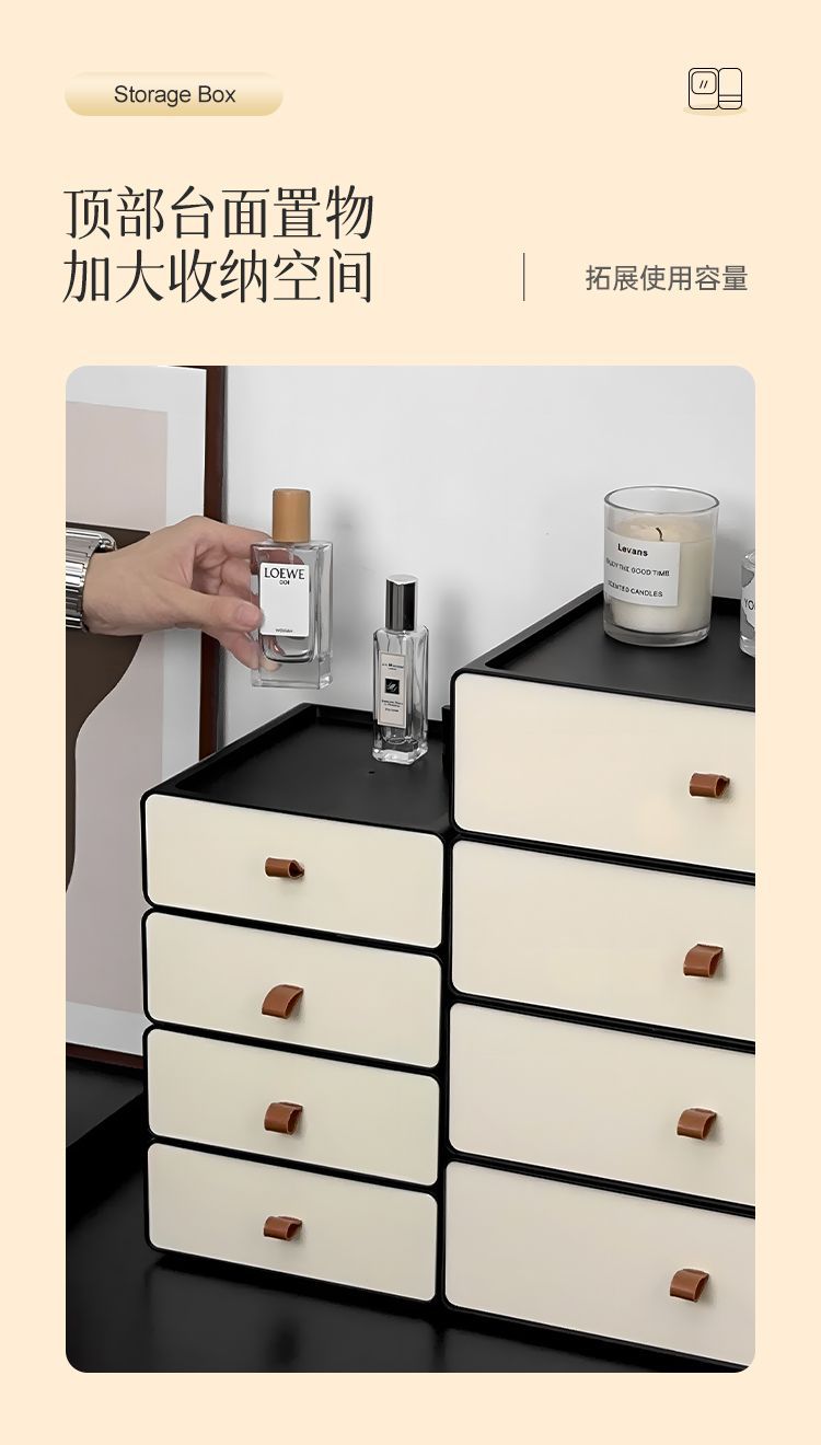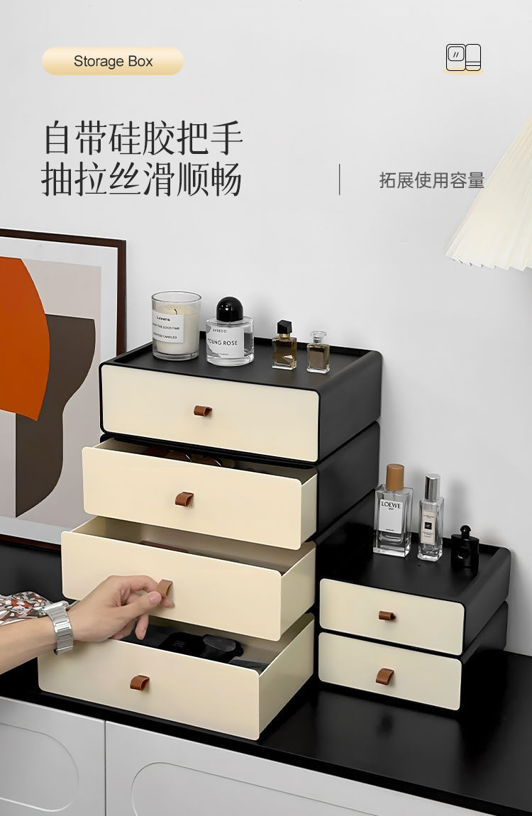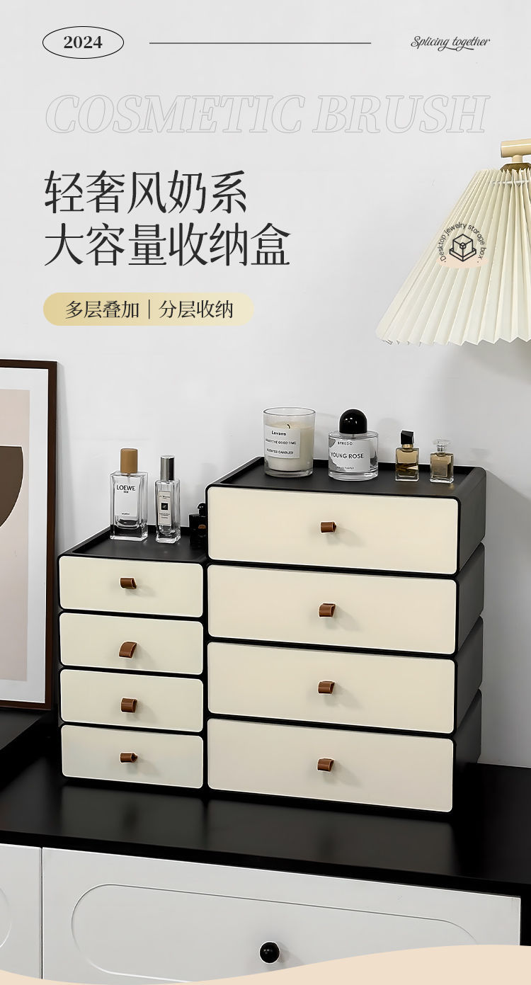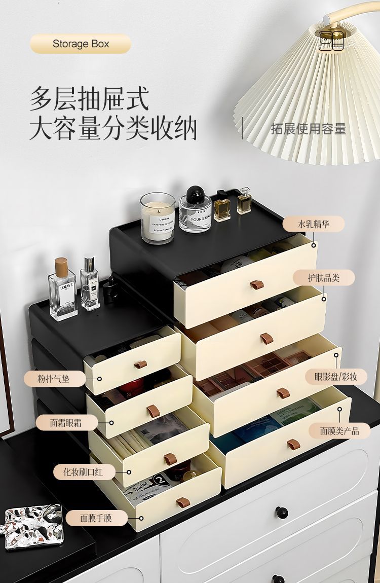 多格抽屉式桌面收纳盒卧室多功能高级感化妆品杂物收纳储物盒收纳