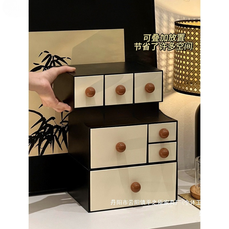 中世スタイルの化粧品収納ボックス引き出し型デスクトップジュエリー収納ラック中国風のレトロな口紅マスク収納キャビネット
