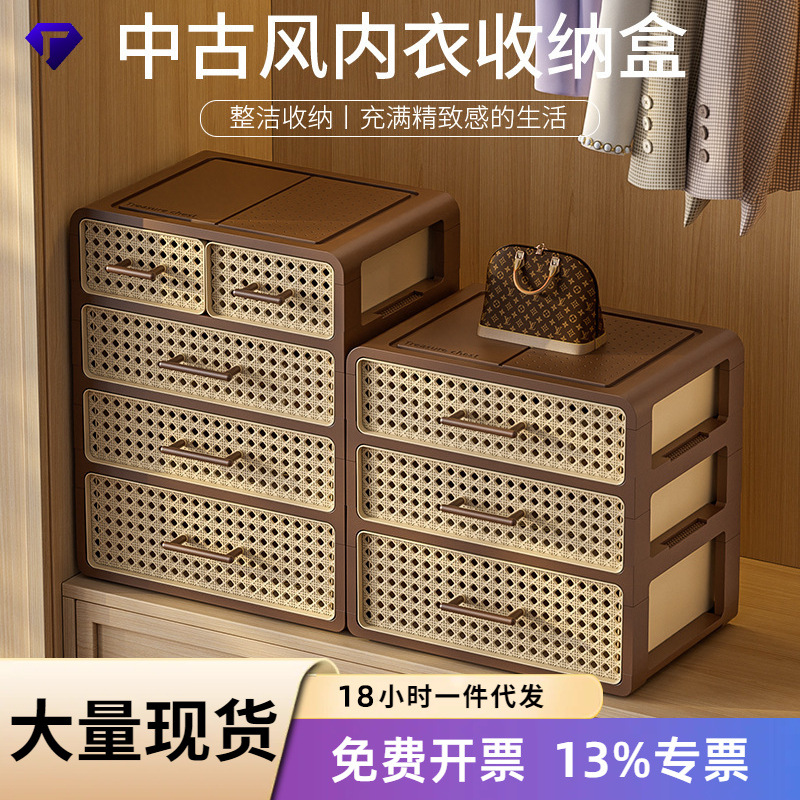家庭用中古風収納ボックス家庭用引き出し式分格整理タンス多機能ブラジャー靴下収納ボックス