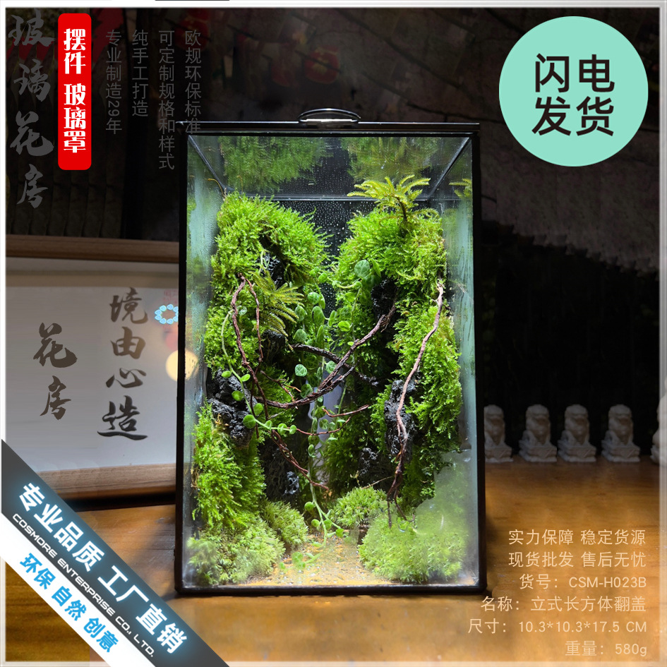 縦型の長方形のふたを覆う多肉植物のコケの小さい景観の不規則なガラスの永遠の命の小さい花の部屋の箱の卸売り