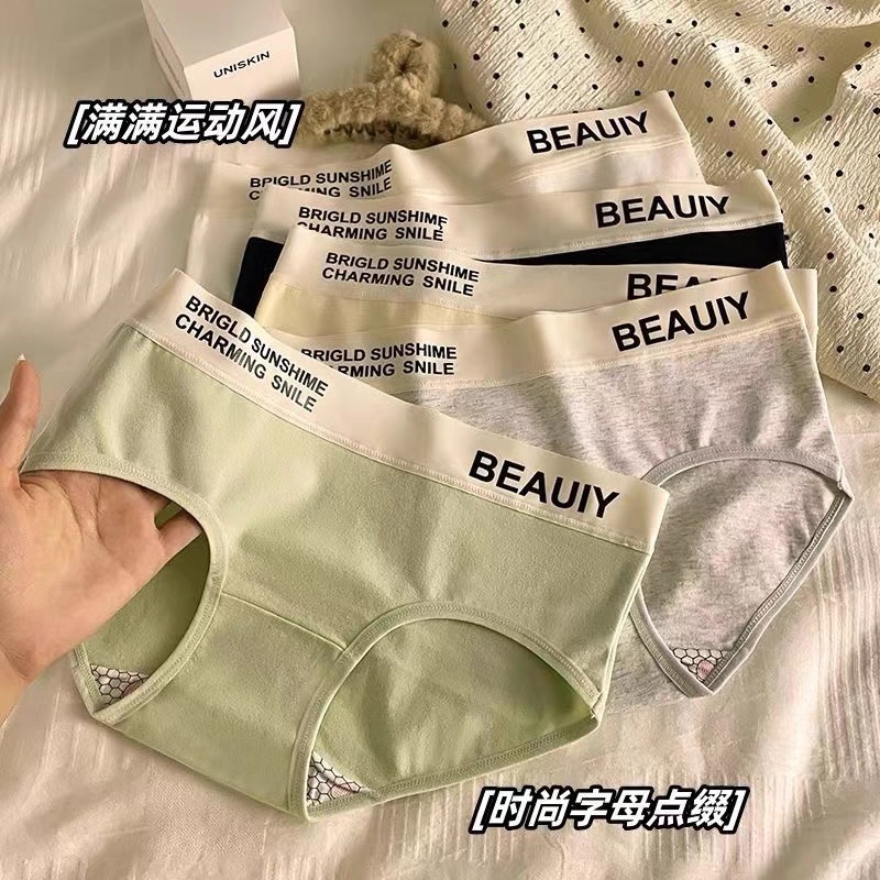 简约少女纯棉内裤5A抗菌档无痕字母运动风可爱女生中腰三角裤女