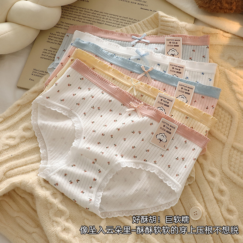 2025新款纯棉内裤女全棉中腰亲肤透气少女学生印花甜美三角裤女