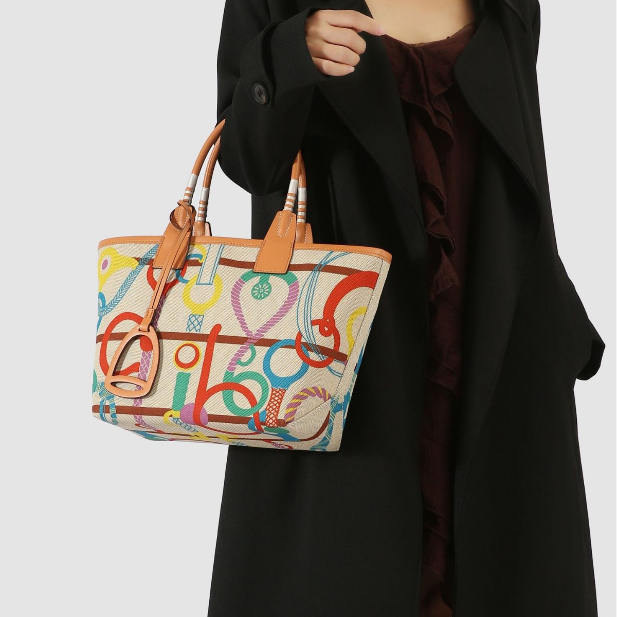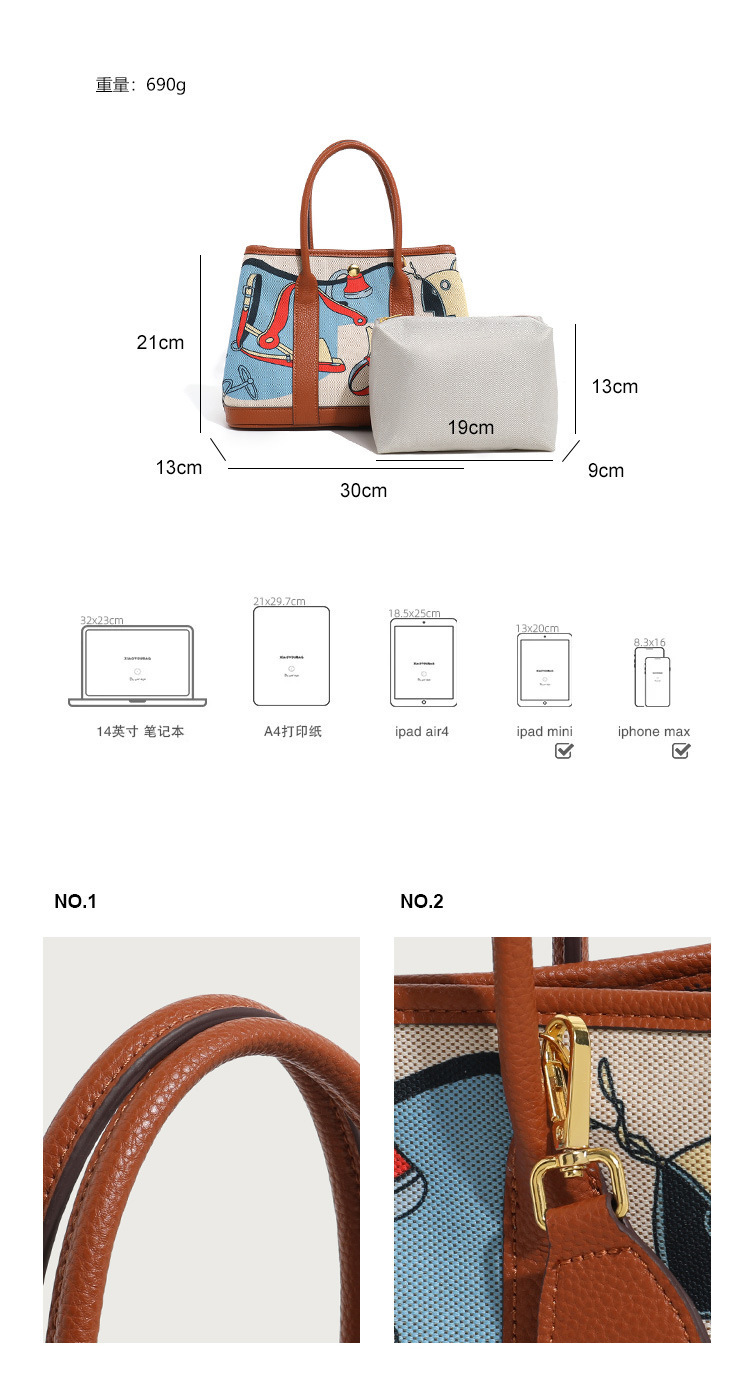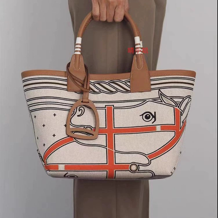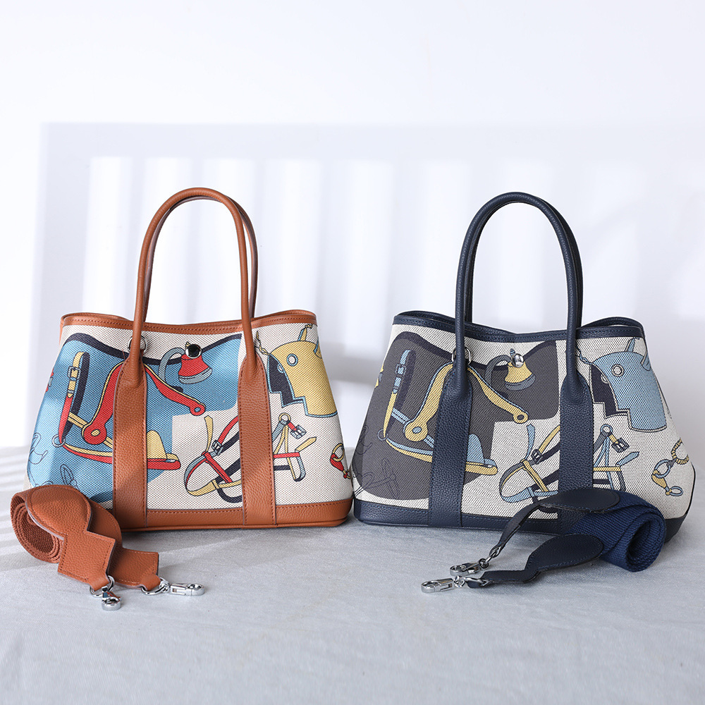 トップ層牛革H家花園バッグ欧米の古典的な彩色女性バッグ真皮落書き大容量ハンドバッグ