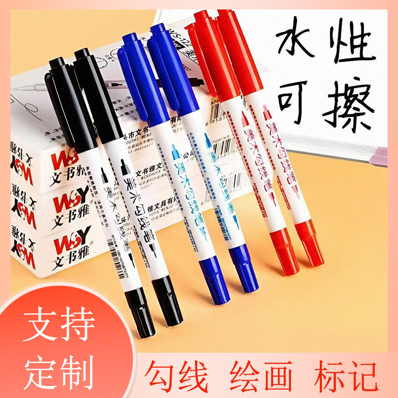 小さいダブルヘッドの油性マーカーペンの線のペンの黒色の青い赤い子供の美術の絵画の縁の物流のマークのペンの水性