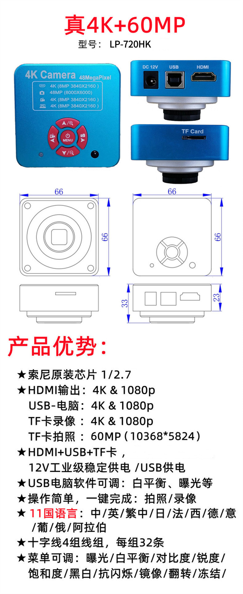 CCD三眼実体顕微鏡 XTL-7050T9-720HKタイプ 6000万画素 HDMI/USBデュアル出力