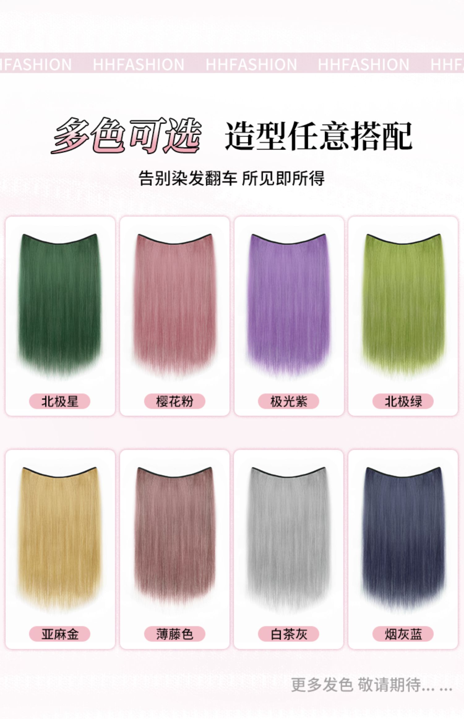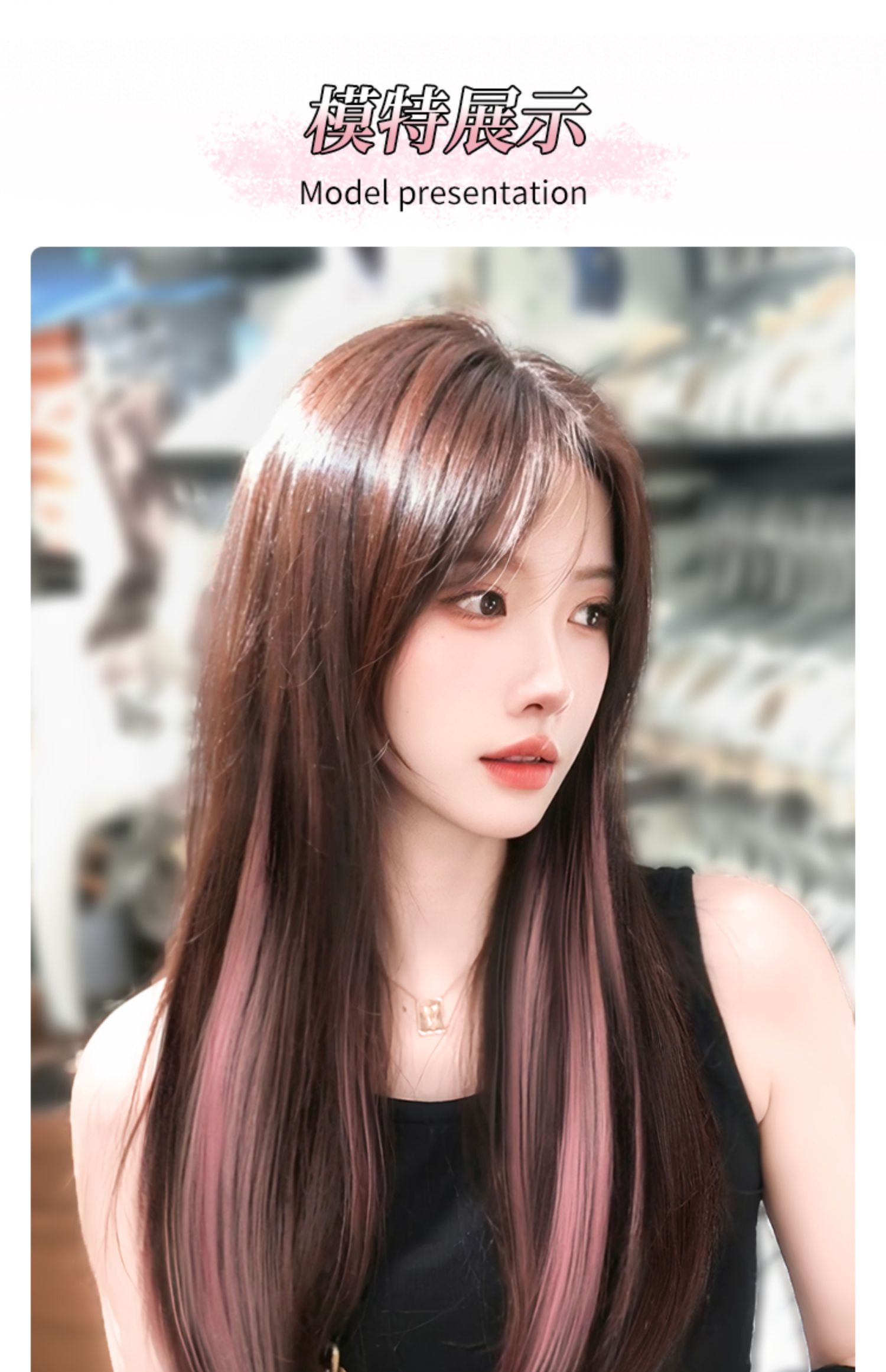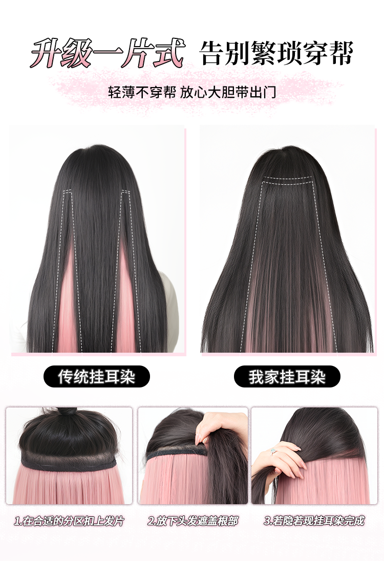 外贸热销挑染假发片直发挂耳染一片式隐形无痕增发彩色巴黎画染发