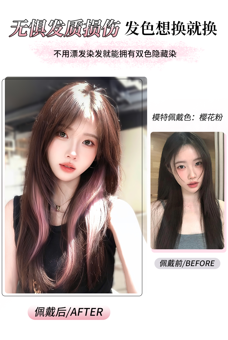 挑染假发片超轻薄卷发挂耳染一片式隐形无痕增发彩色巴黎画染发