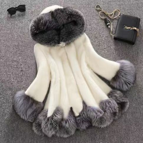 2025 冬の新スタイル模造ミンク模造毛皮コートミッドレングス模造ミンクベルベットコート女性模造キツネの毛皮のフード付き
