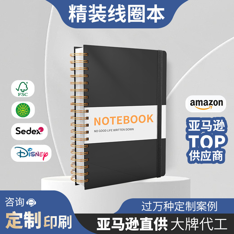 ハードカバーコイルノート ビジネス記録用 アメリカンカバー ルーズリーフ フラットに開くスパイラルリングノート ロゴ印刷可能