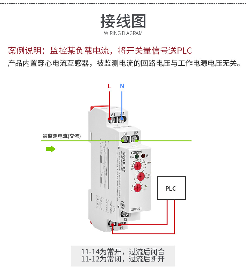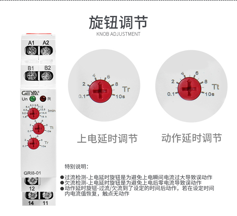 GEYA 過電流リレー 220V GRI8-01 電流調整可能な過負荷保護電流監視