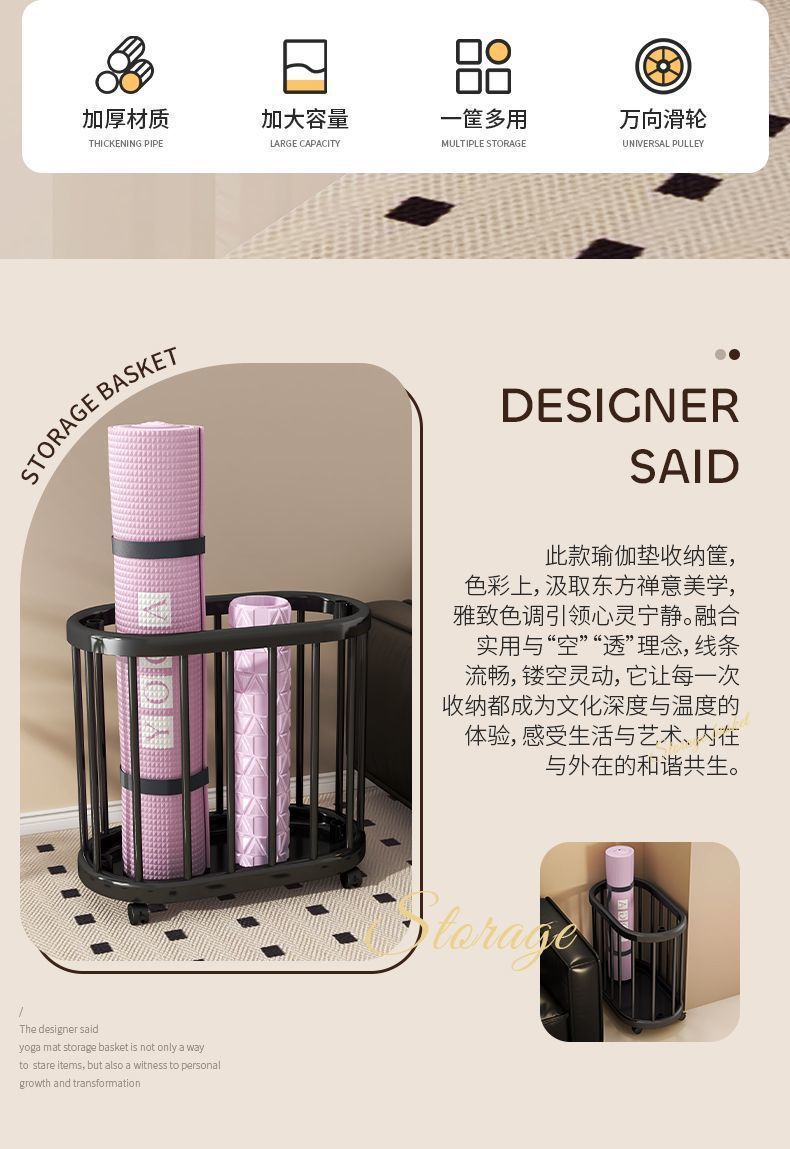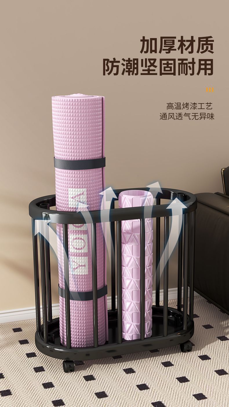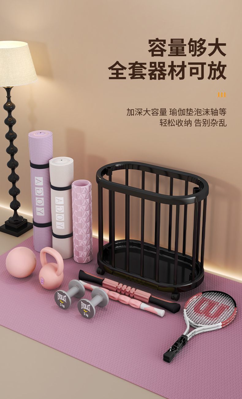 ヨガマット、フィットネス機器収納バスケット、収納ラック、汚れた衣類バスケット、移動式車輪付き汚れた衣類バスケット