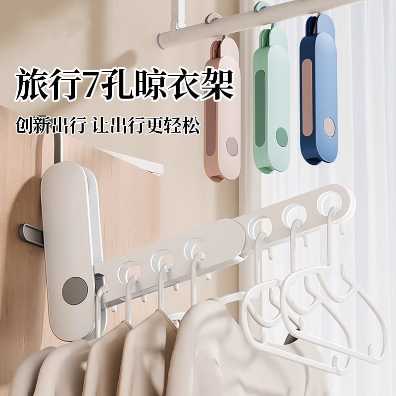 【原创】旅行折叠衣架便携七孔晾衣架旅行出差酒店多功能挂架神器