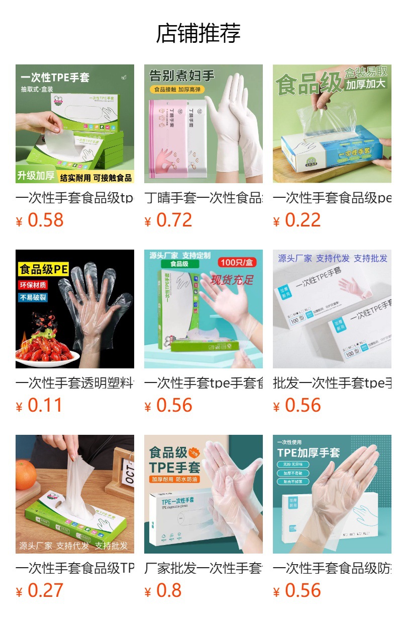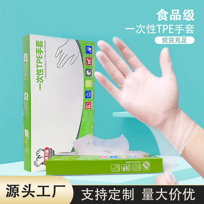使い捨てtpe手袋使い捨て手袋食品級防護透明厚手tpe手袋フィルム手袋卸売り