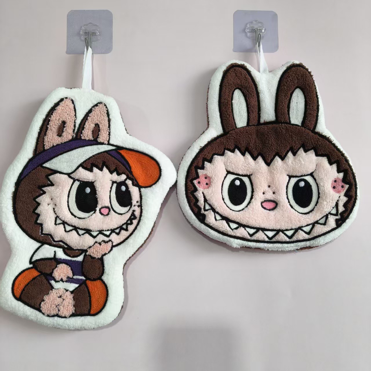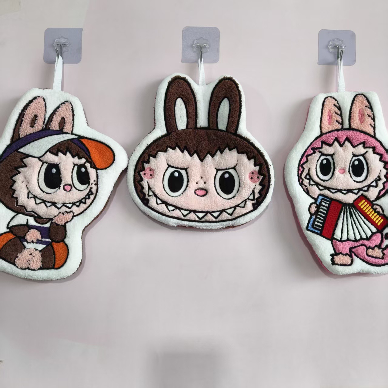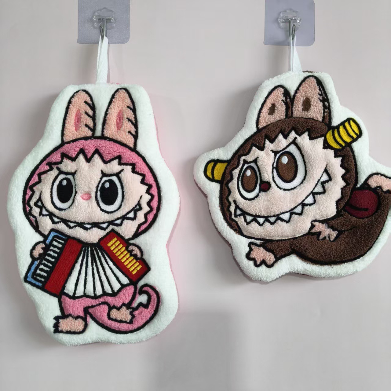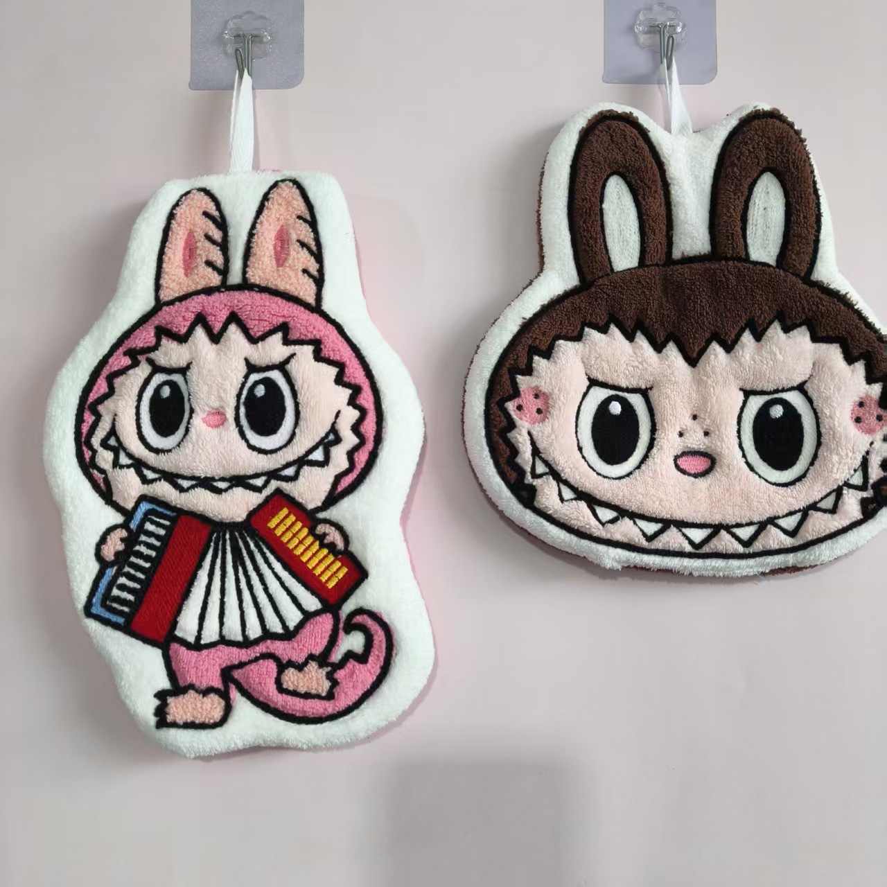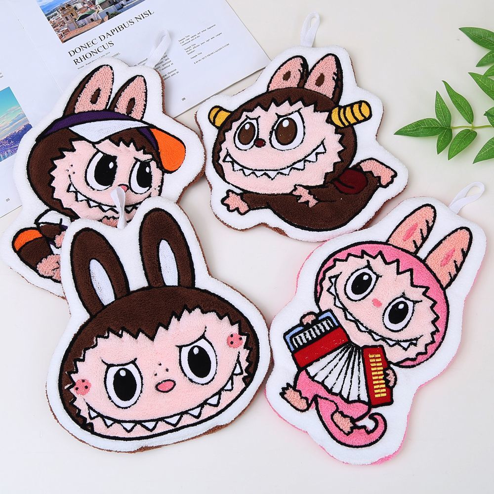 新款卡通擦手巾泡泡玛特拉布布labubu挂式厨房卫生间手巾手帕毛巾