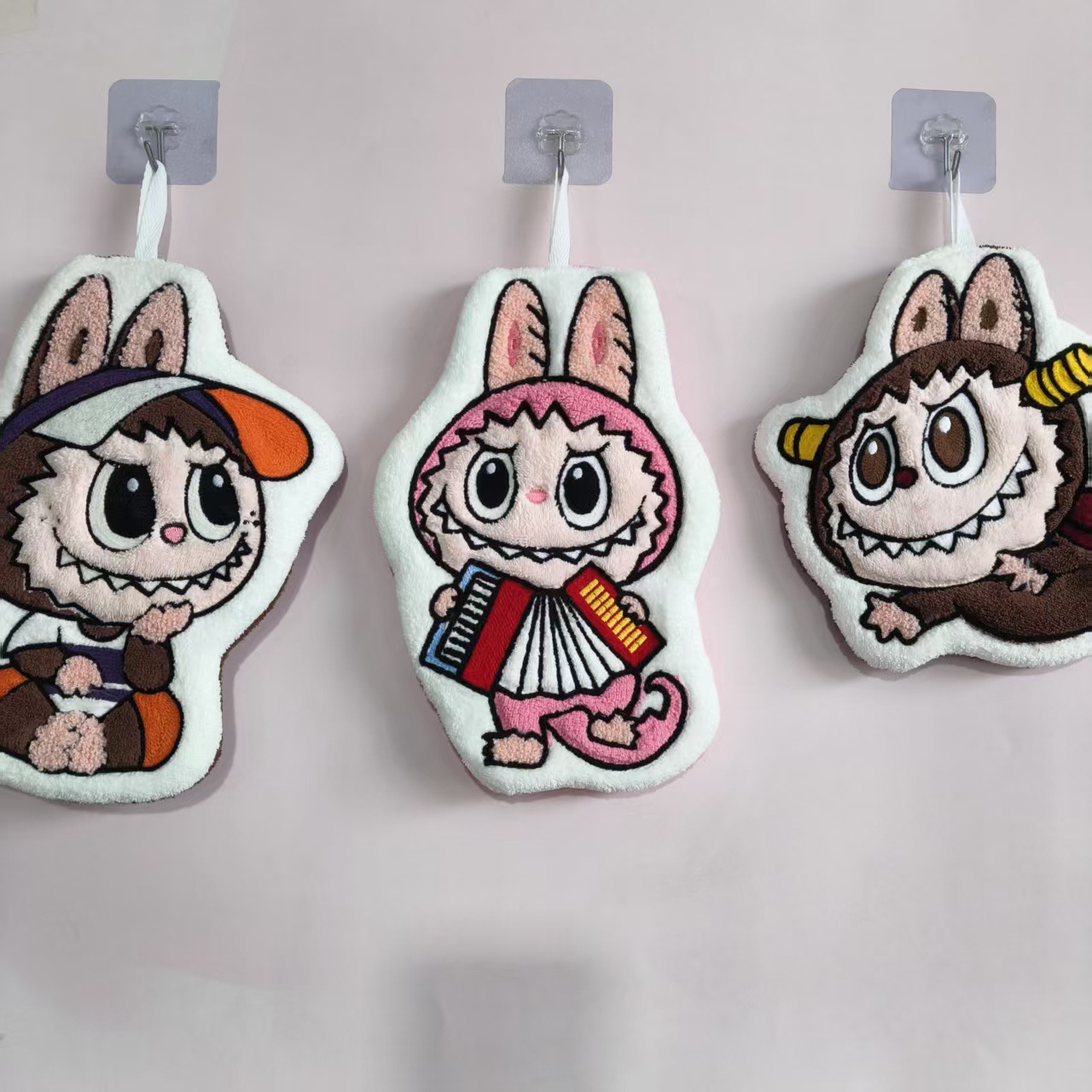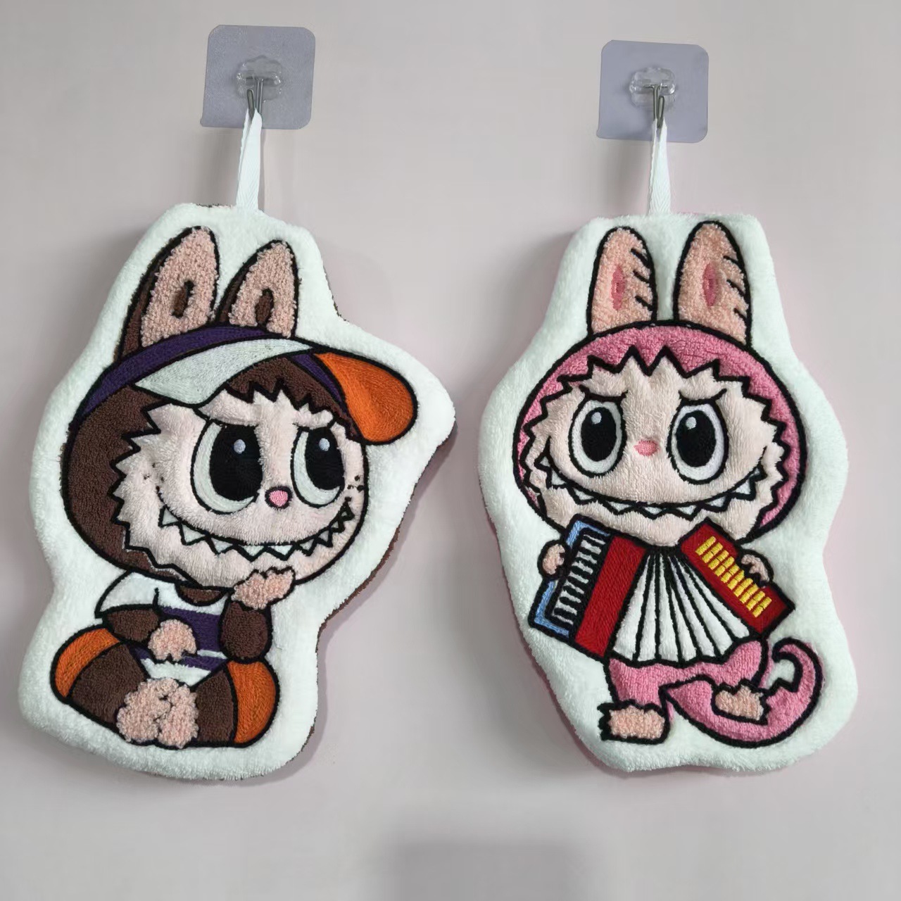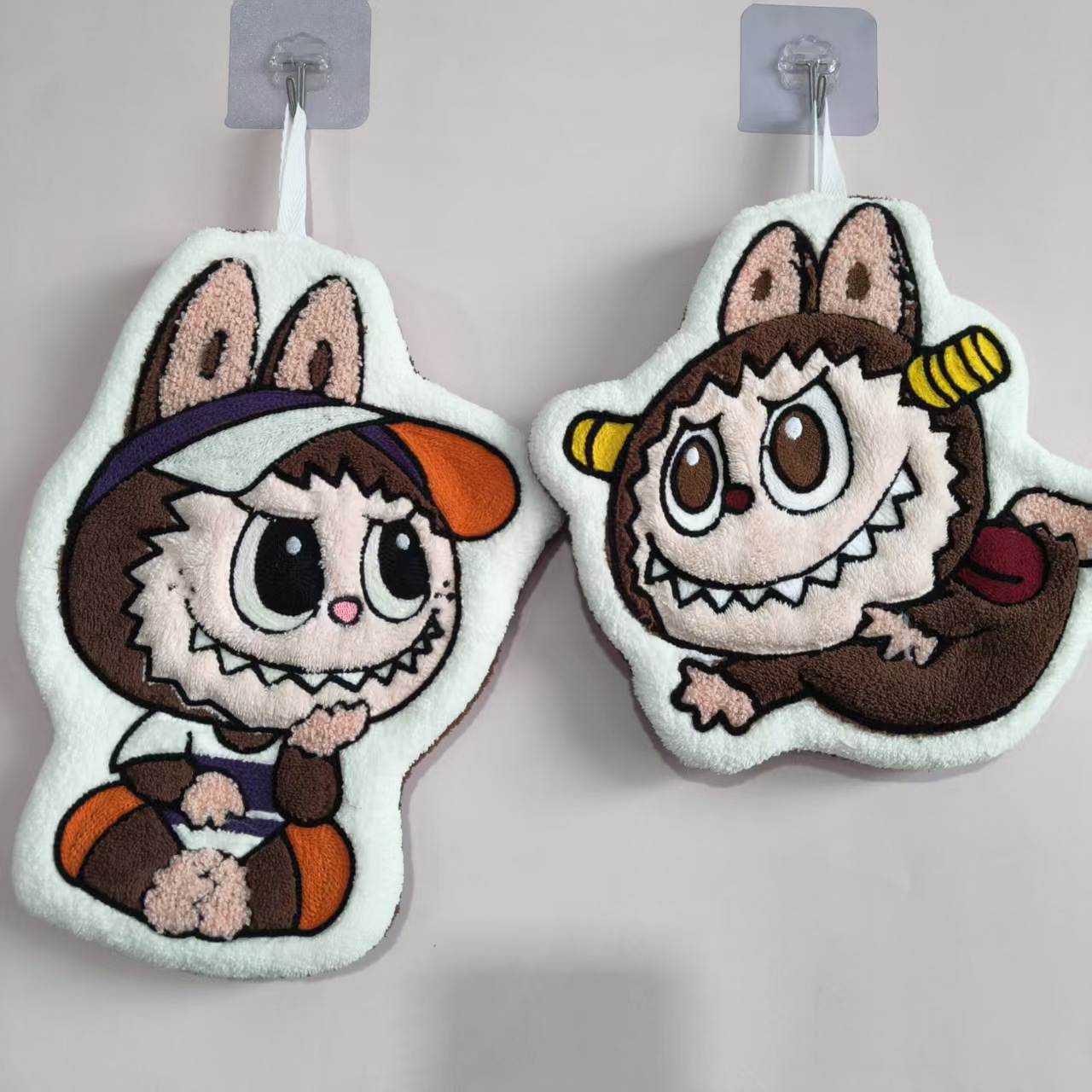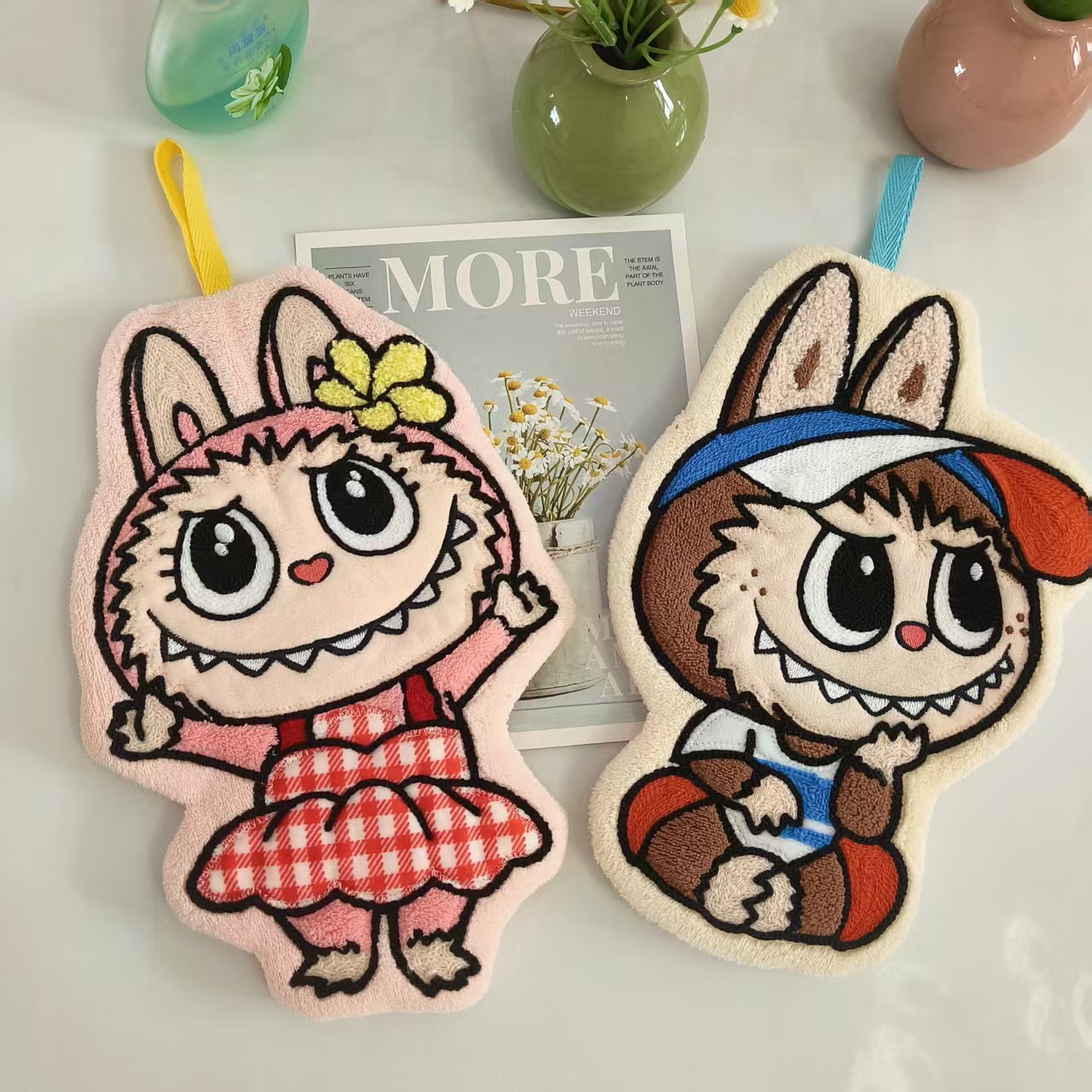 新款卡通擦手巾泡泡玛特拉布布labubu挂式厨房卫生间手巾手帕毛巾