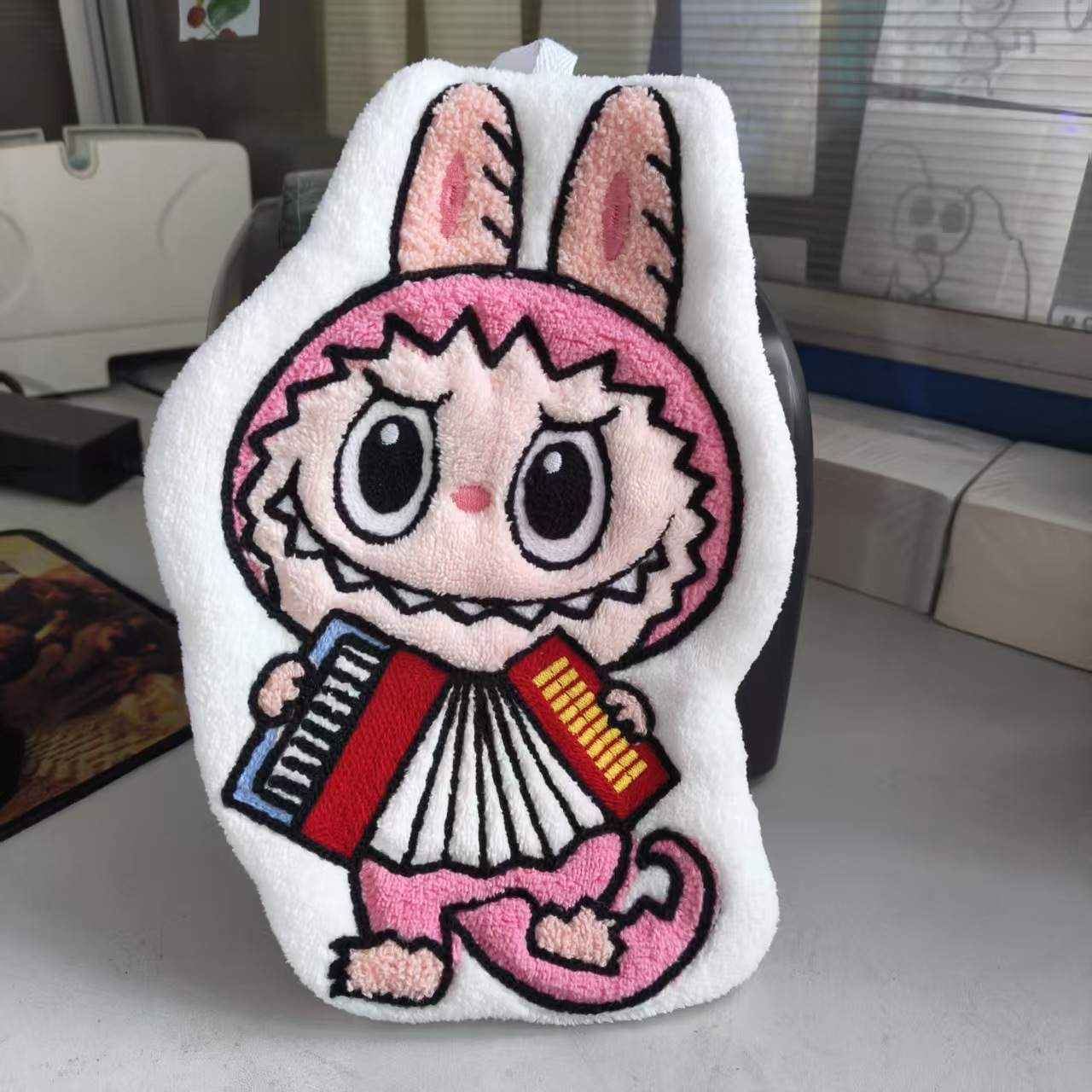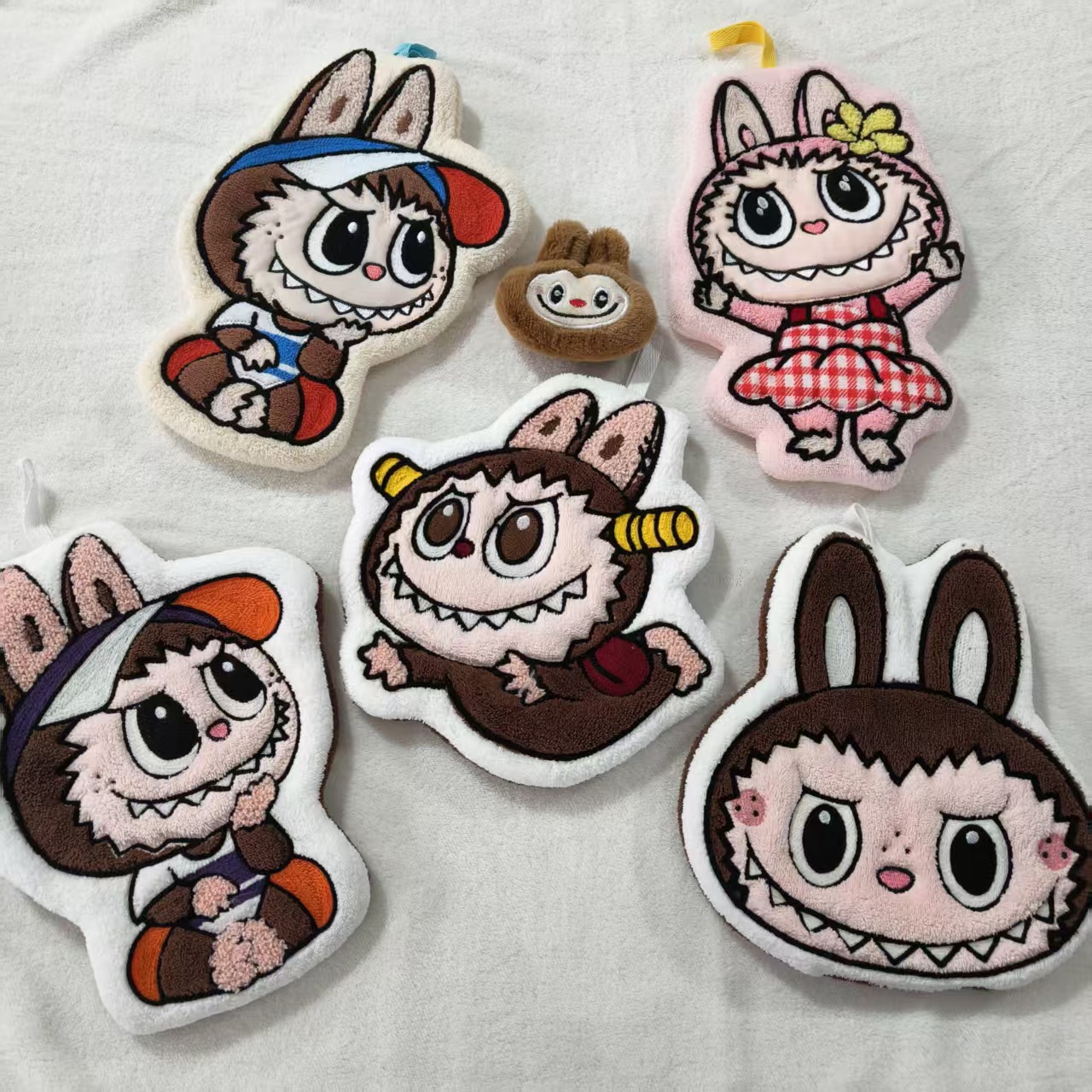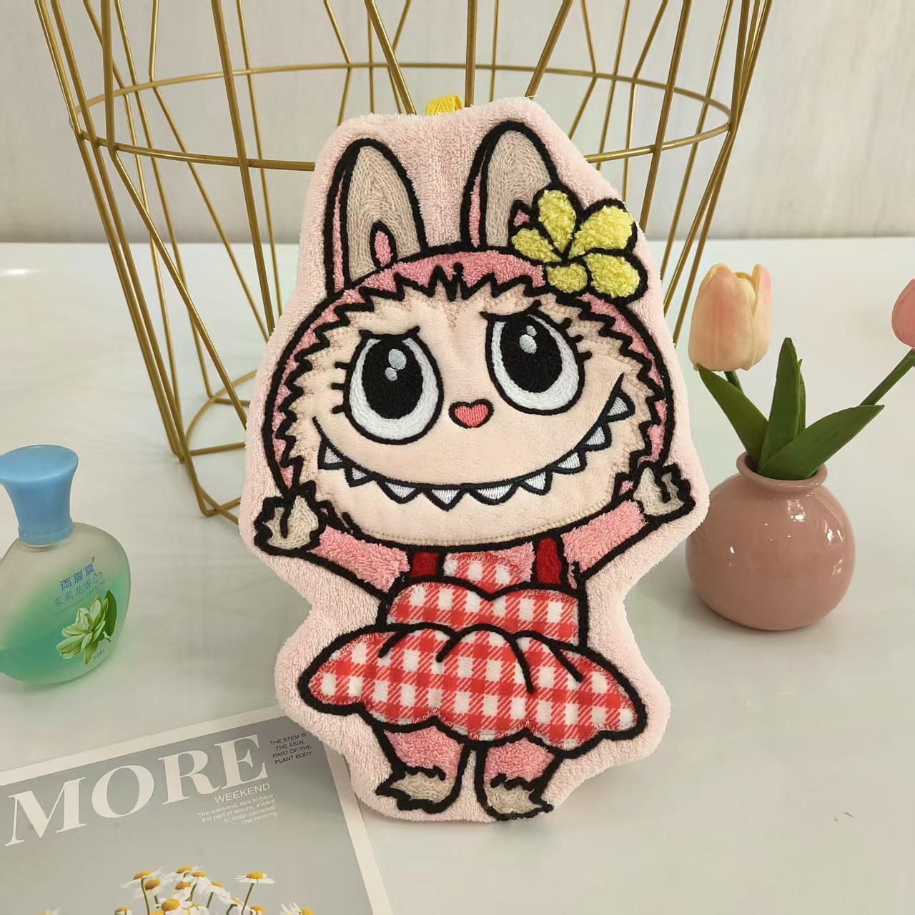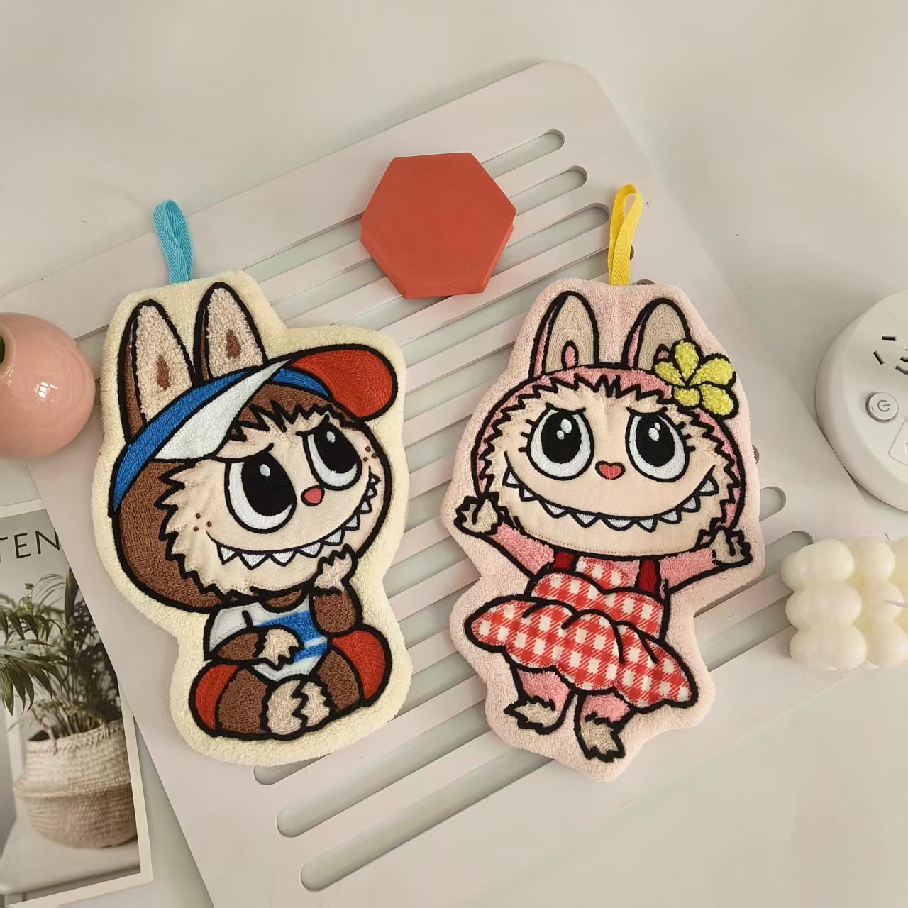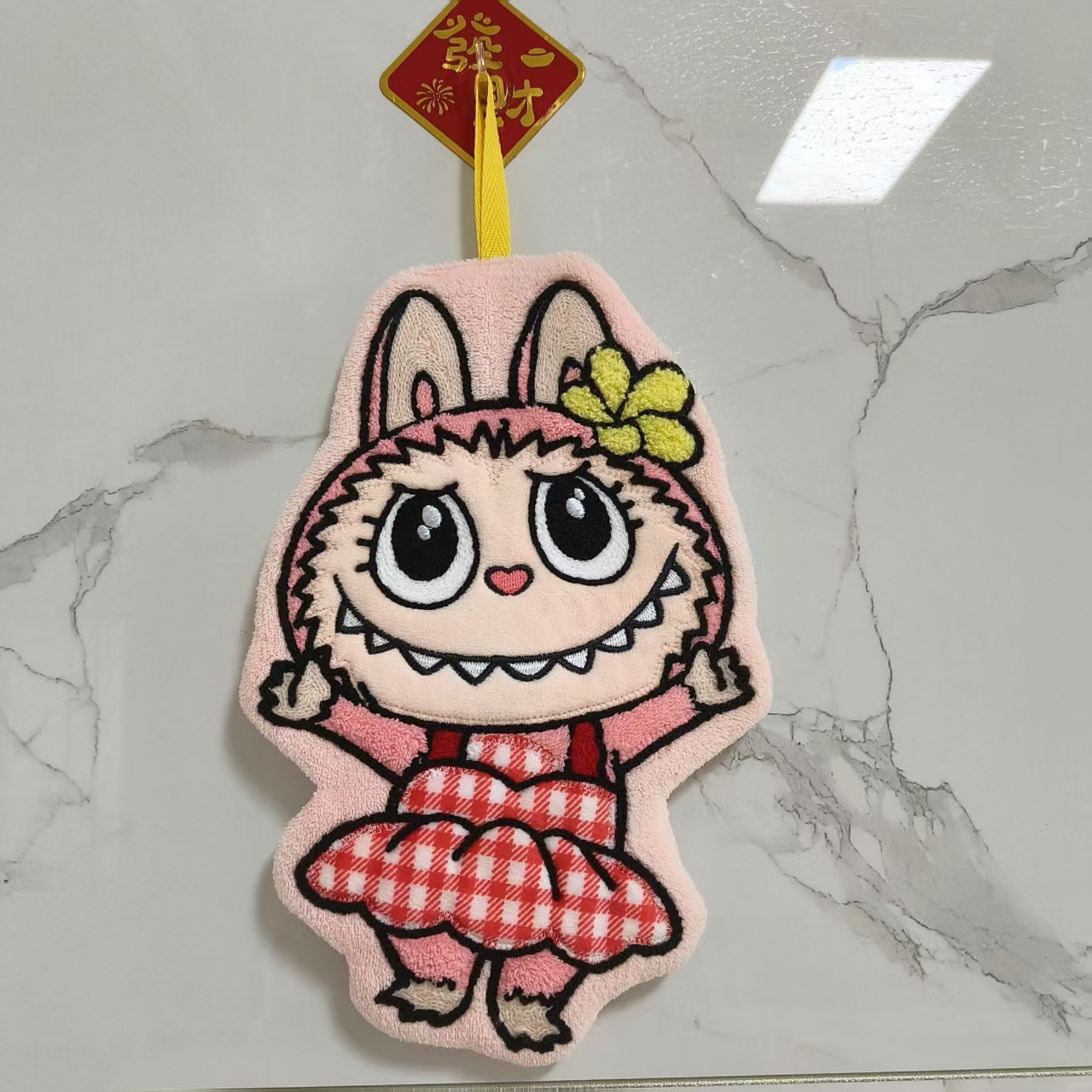 新款卡通擦手巾泡泡玛特拉布布labubu挂式厨房卫生间手巾手帕毛巾