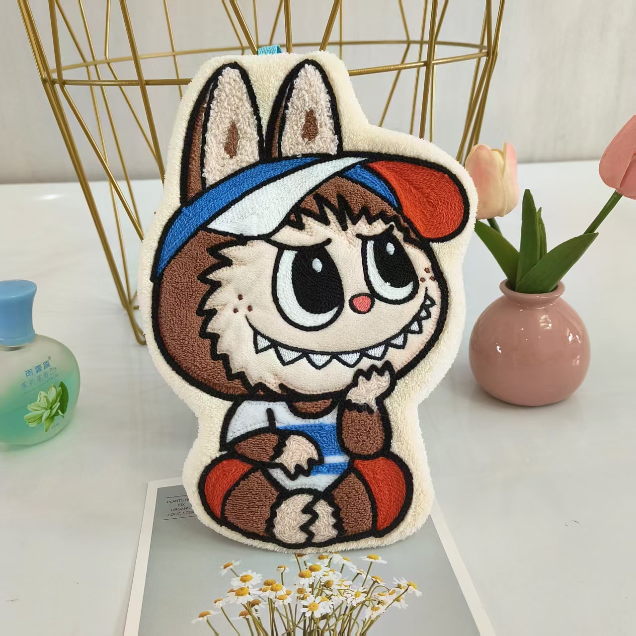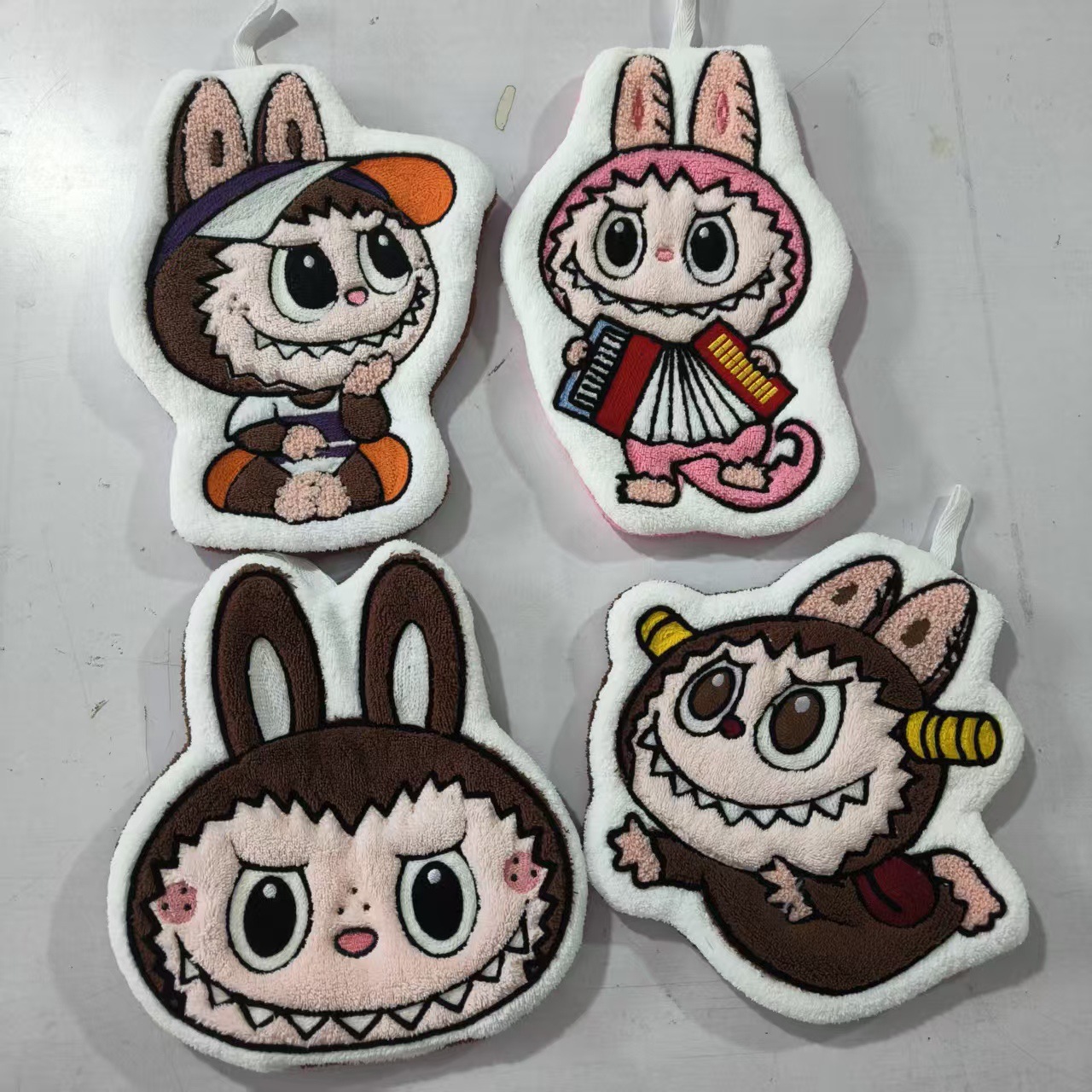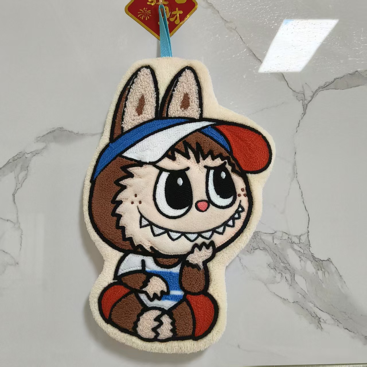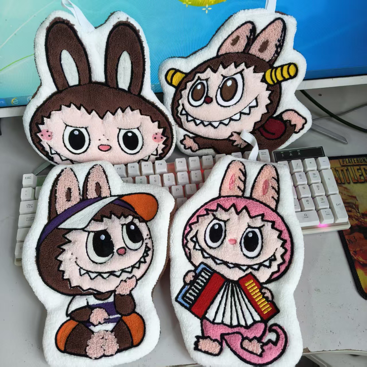 新款卡通擦手巾泡泡玛特拉布布labubu挂式厨房卫生间手巾手帕毛巾