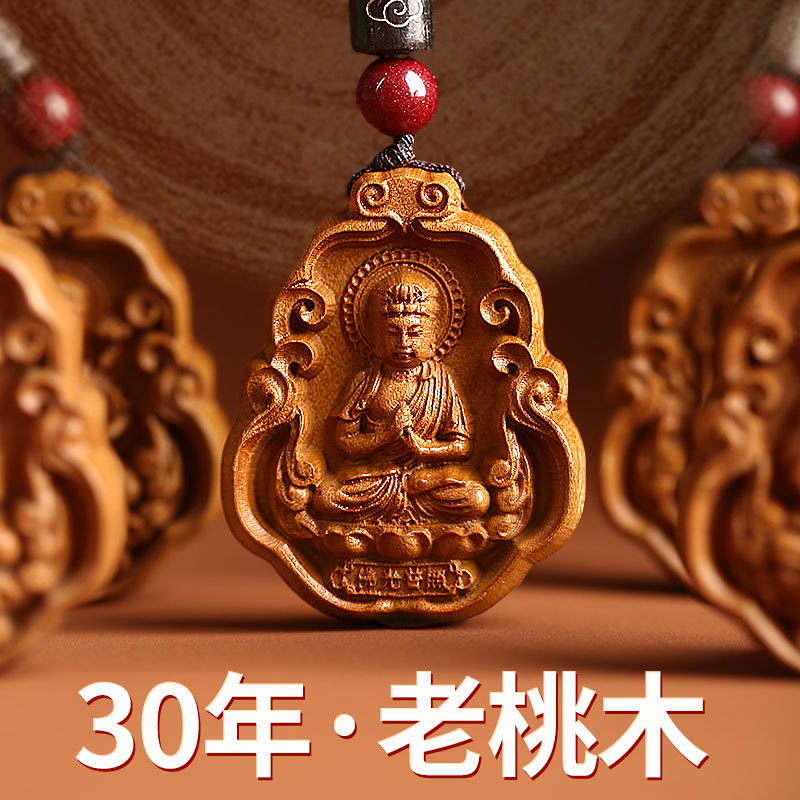 天然真桃木本命仏ペンダント十二生肖守護神ネックレス普賢文殊平安ペンダント