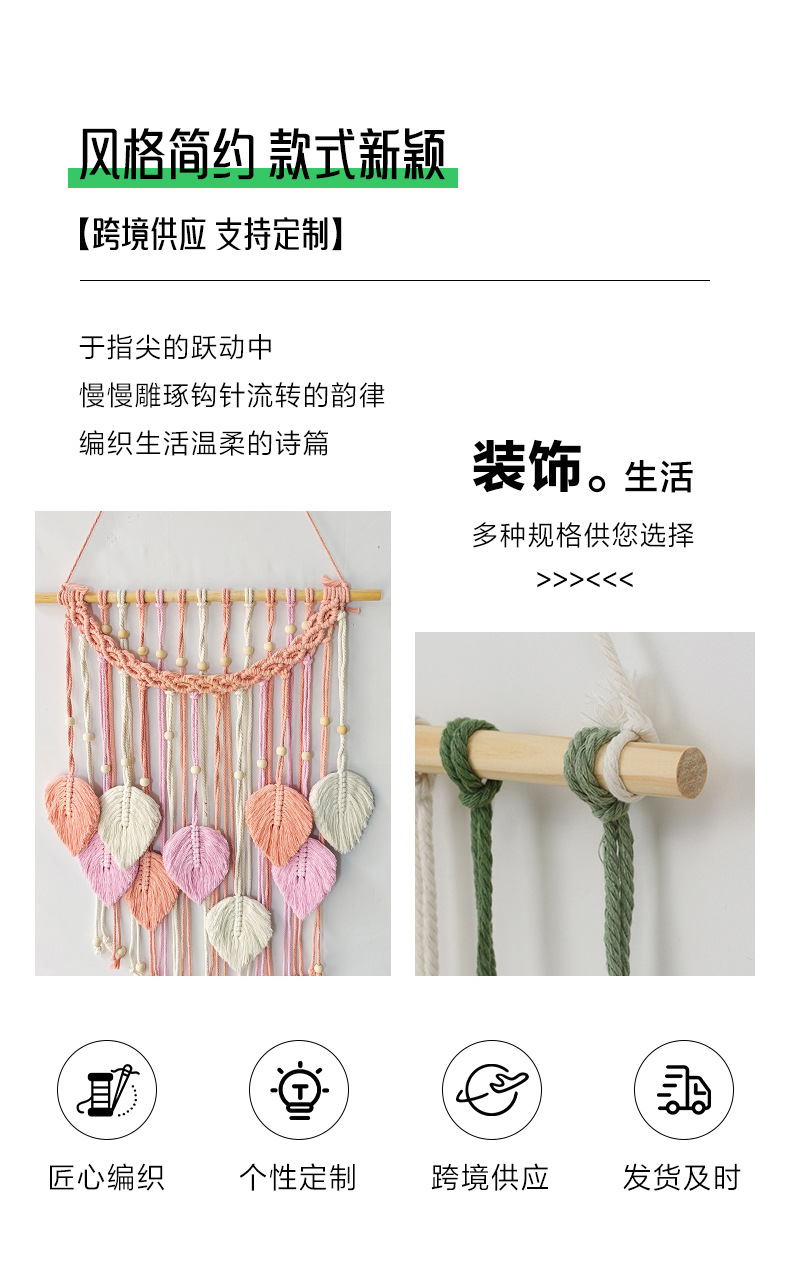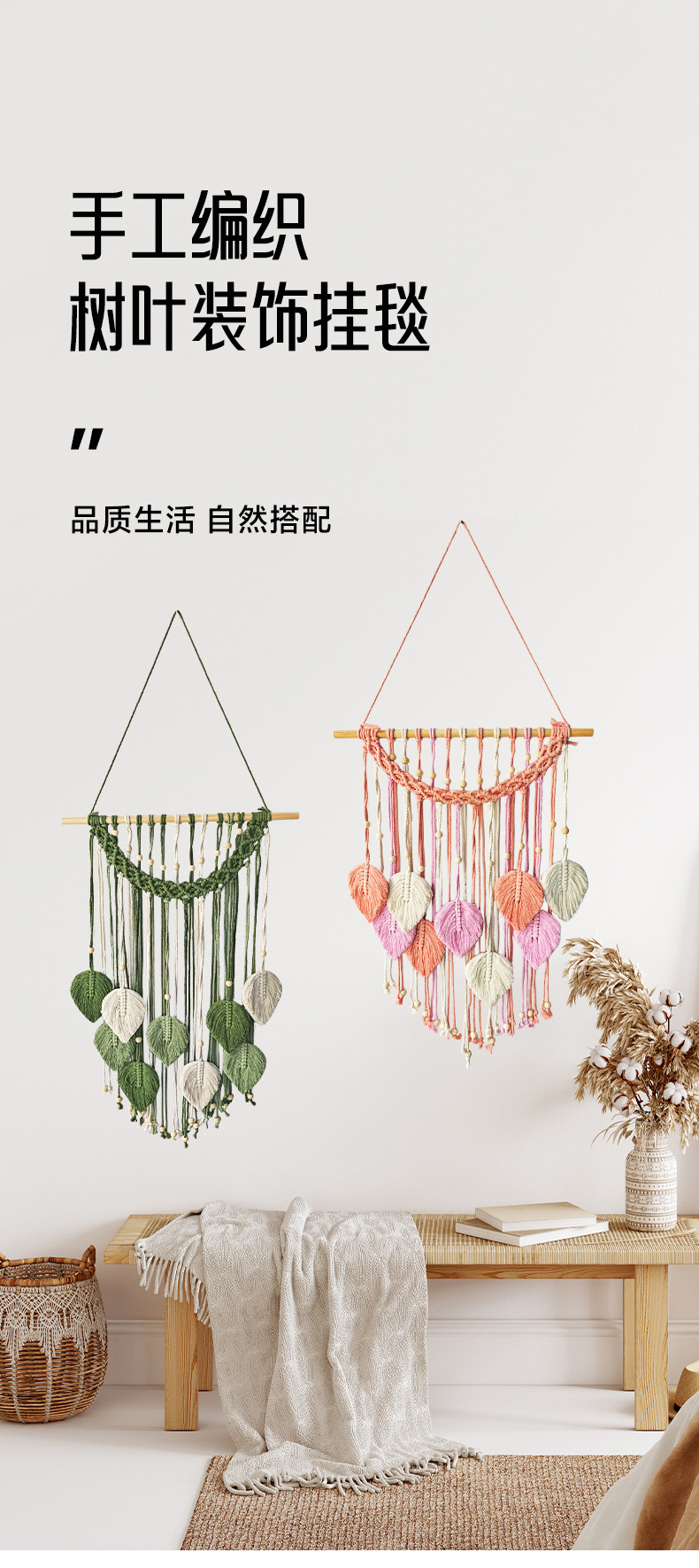手工编织棉绳树叶挂毯 装饰树叶家具壁挂流苏壁挂夹照片卧室墙饰