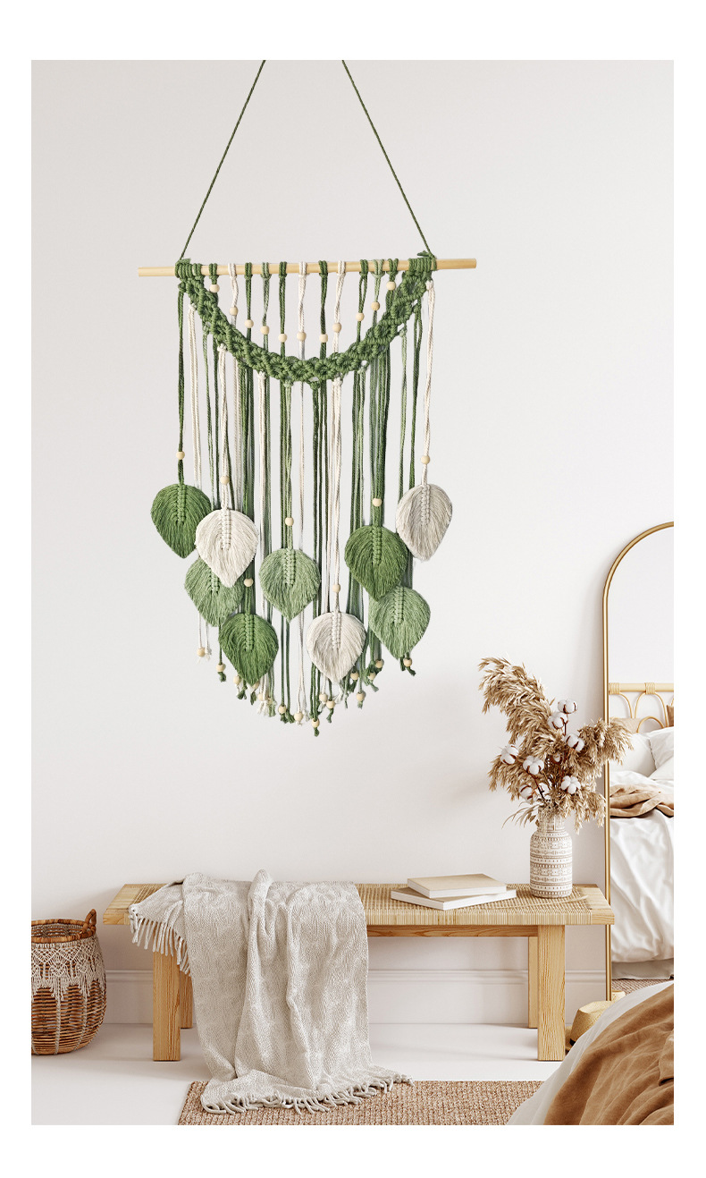 リーフタペストリー収納ラックホテルB&B寝室壁装飾タペストリークリエイティブ手作り綿ロープタッセルタペストリー収納ラック