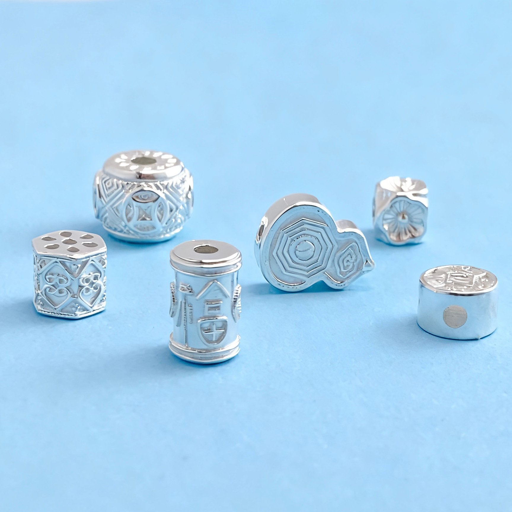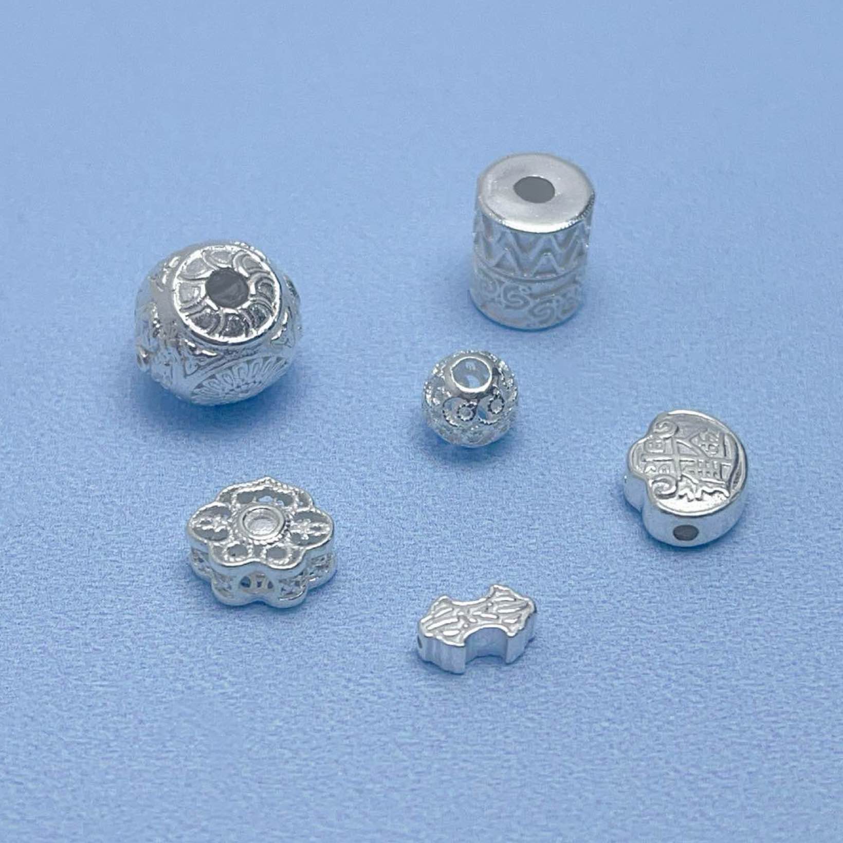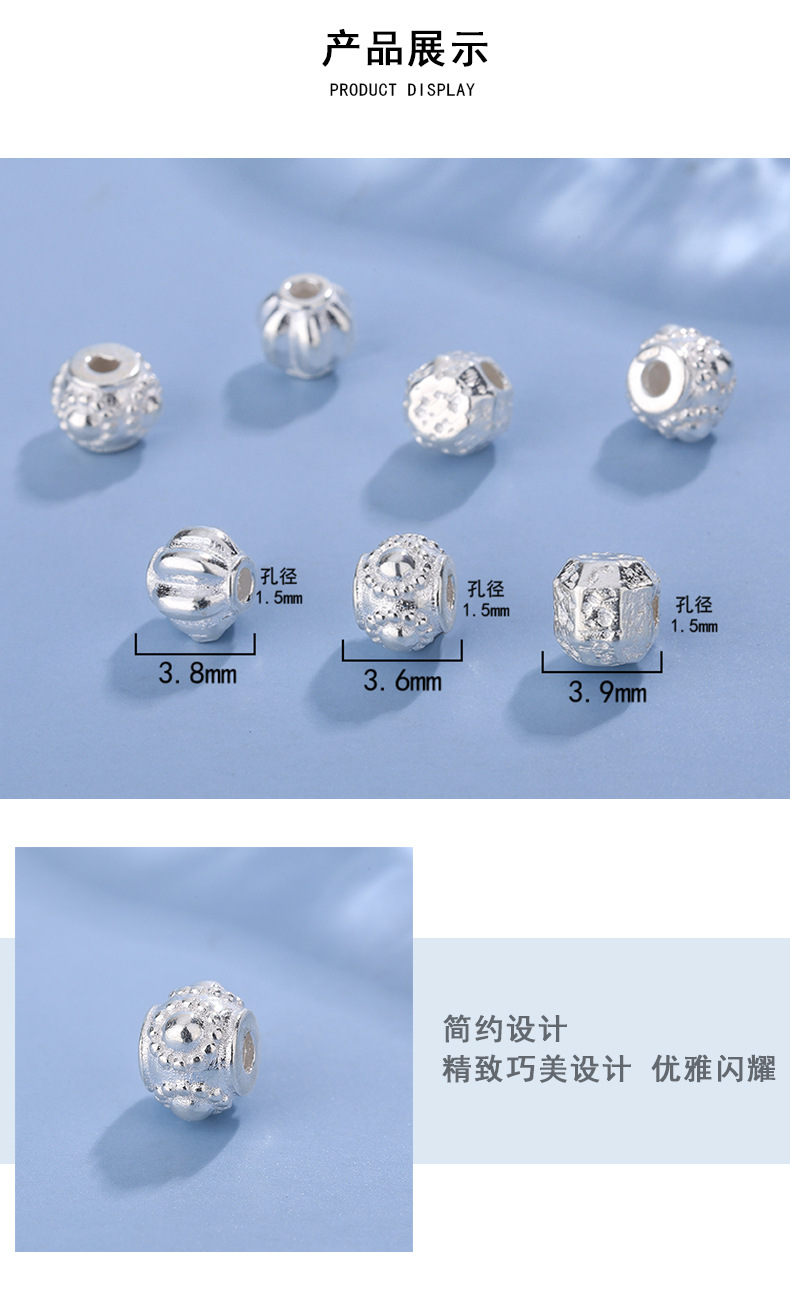 S999足银祥云桶珠3D硬银隔珠配件DIY手工编织文玩手绳串散珠配饰